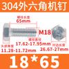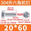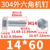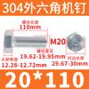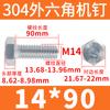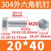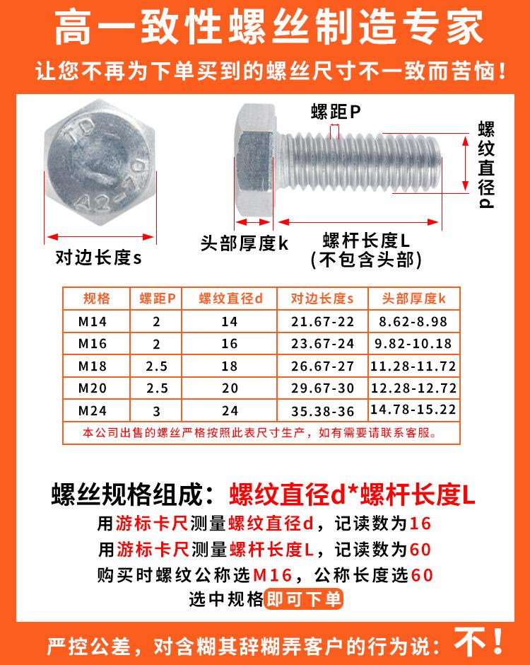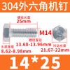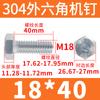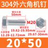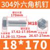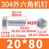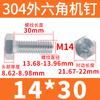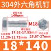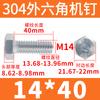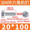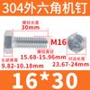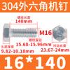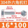 Tornillo de cabeza hexagonal exterior de acero inoxidable 304, rosca completa, DIN933, M14M16M18M20