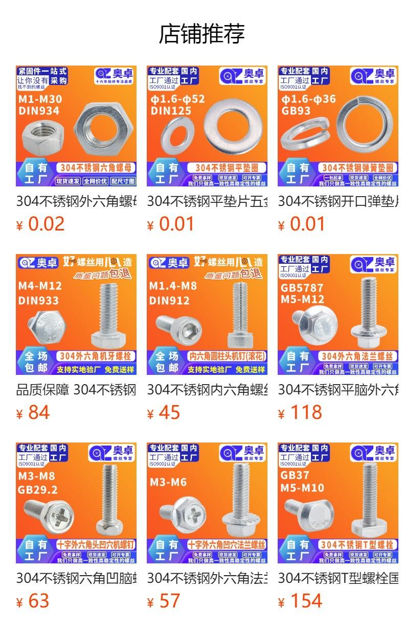 M14 * 25(1 Pack = 90 PCs), M14 * 30(1 Pack = 80 pcs), M14 * 35(1 Pack = 75 PCs), M14 * 40(1 Pack = 65 PCs), M1...