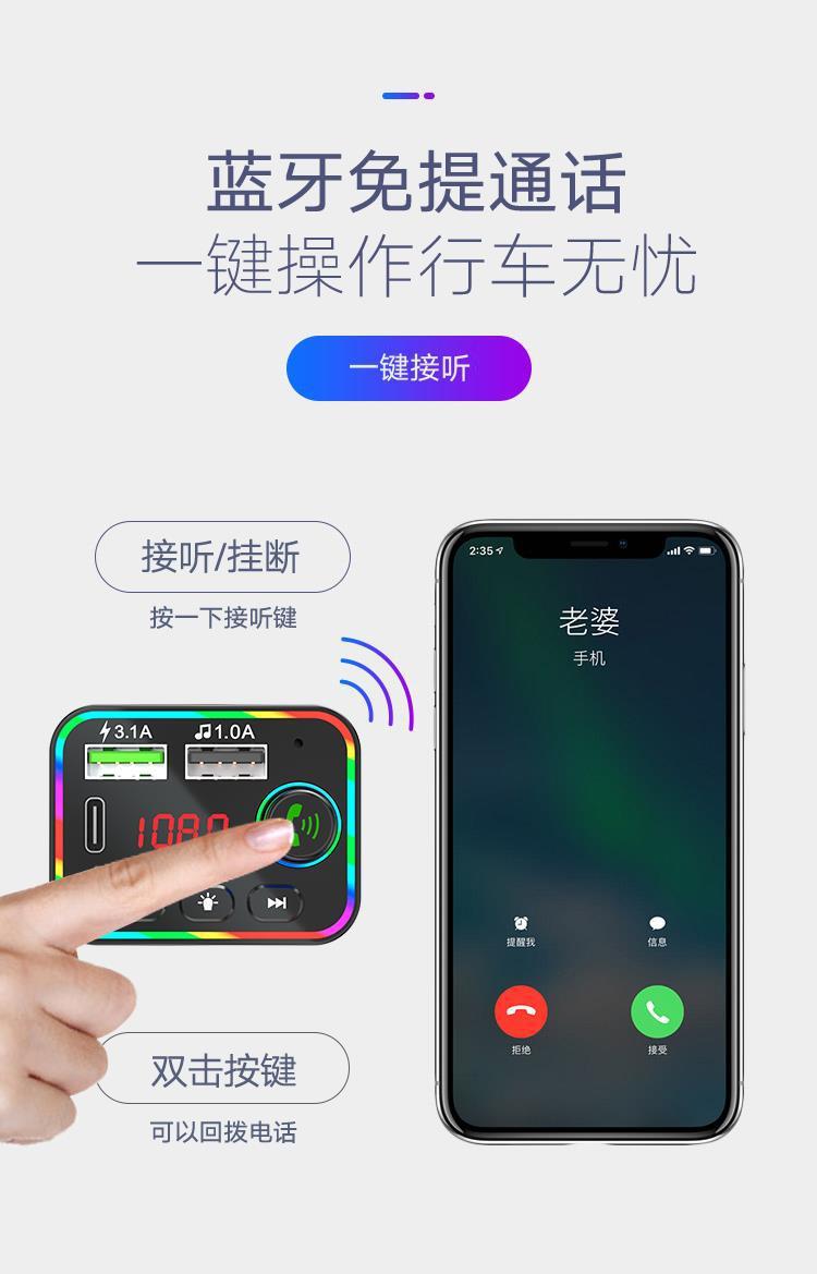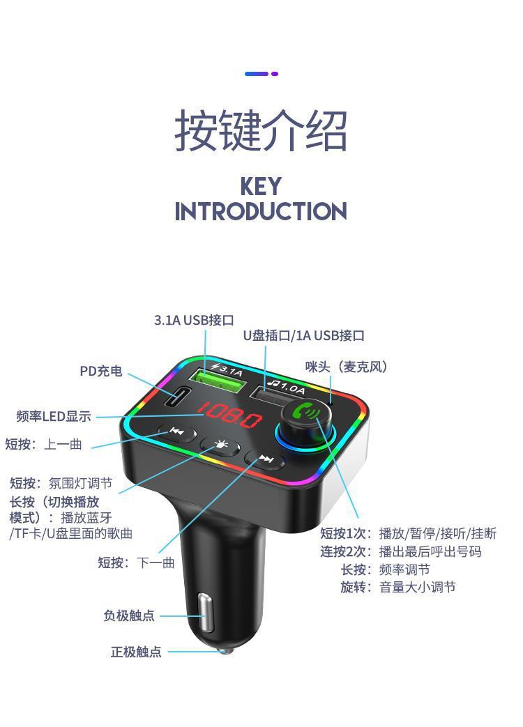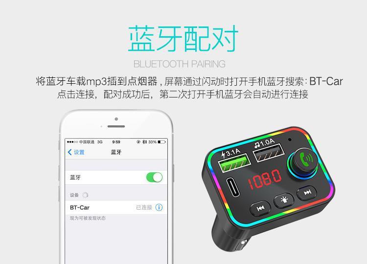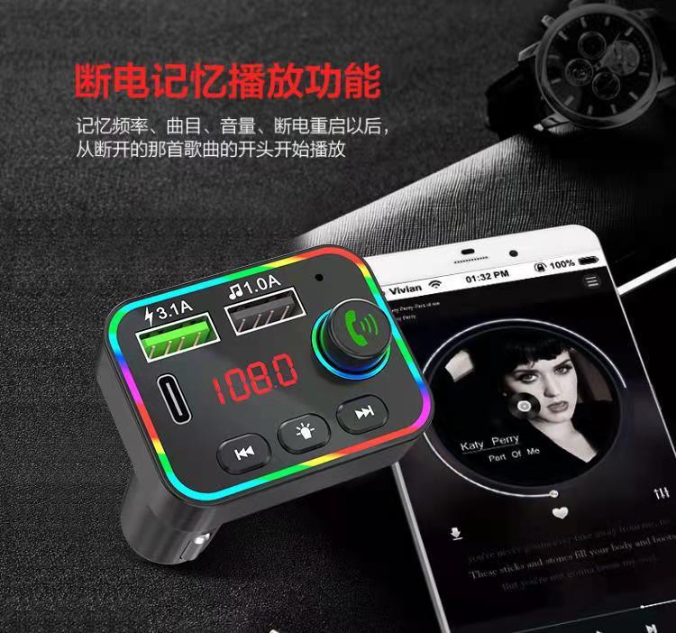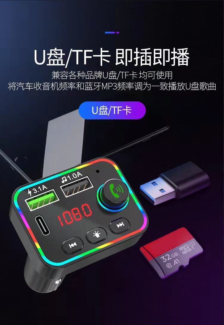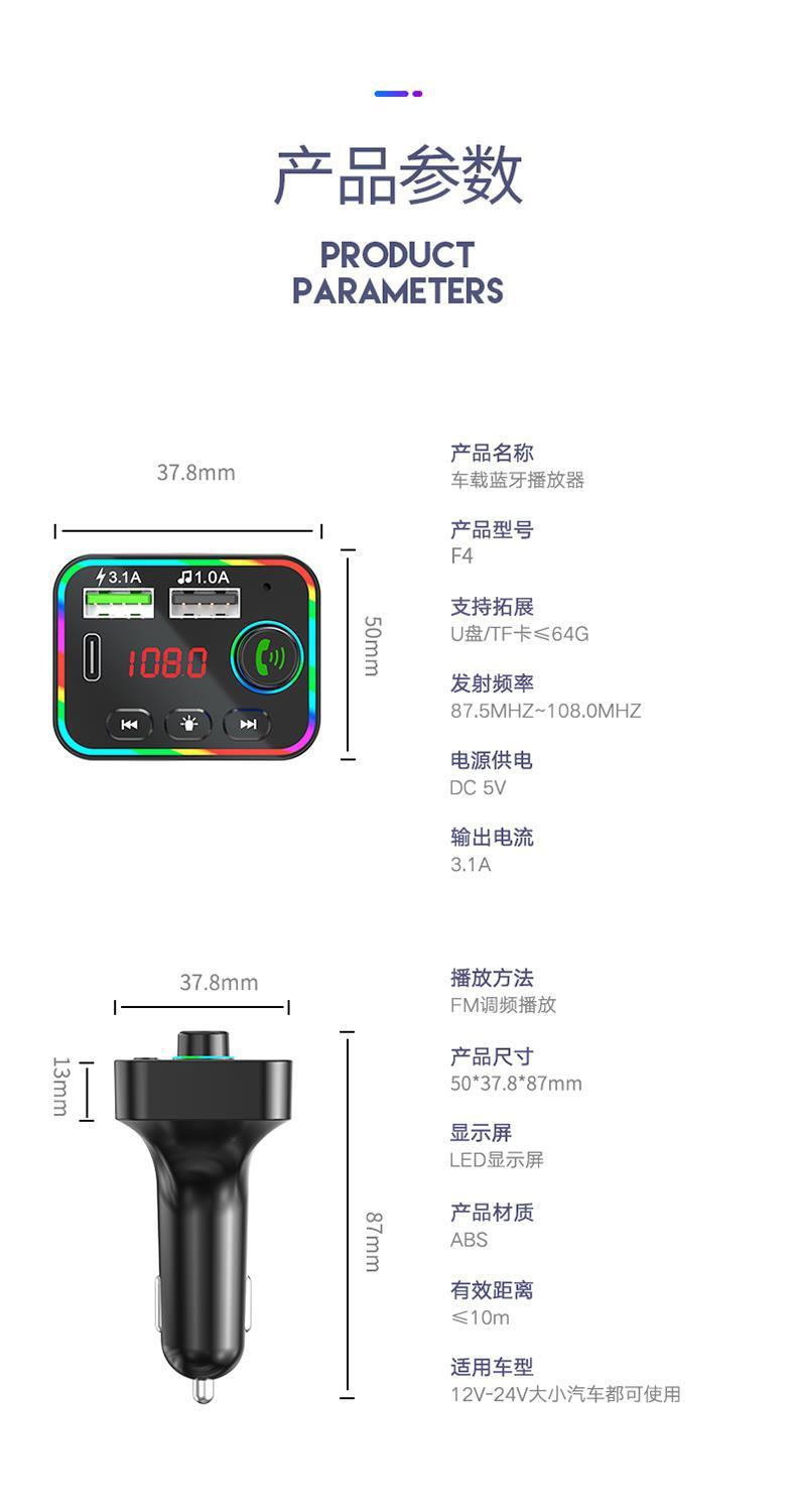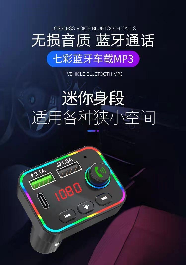 Reproductor MP3 para coche F4 transfronterizo, receptor Bluetooth, disco U, luz ambiental, MP3 para coche, encendedor de cigarrillos para coche