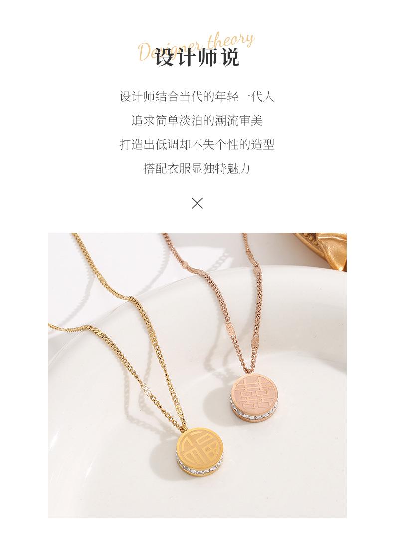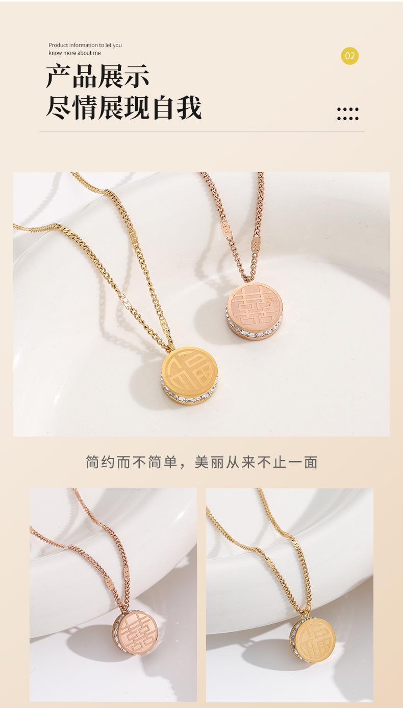Collar con colgante Fuxi de doble cara de estilo chino popular de TikTok, cadena de acero de titanio y circonita de alta calidad, ligero y de lujo para mujer.