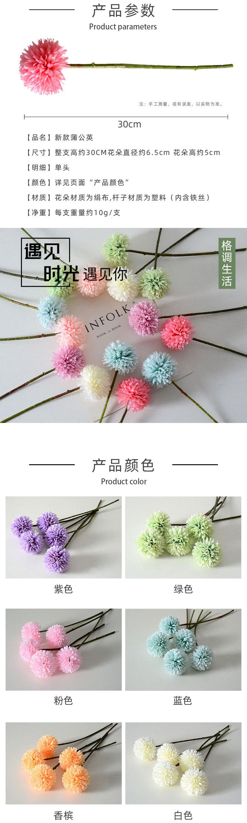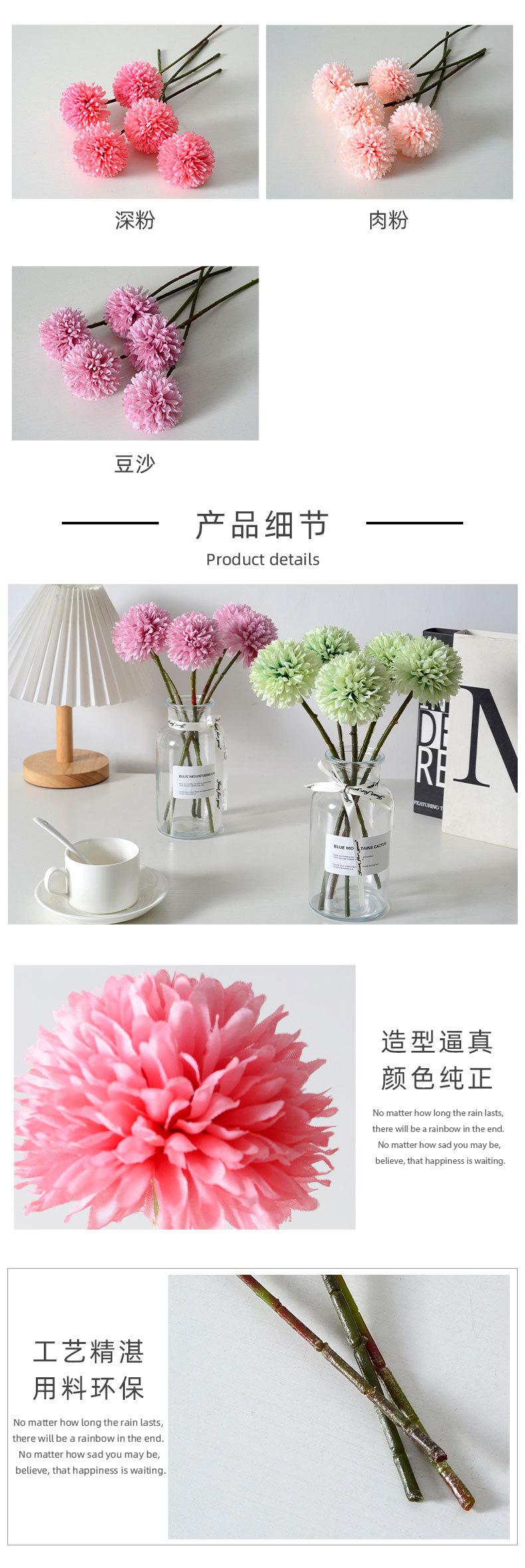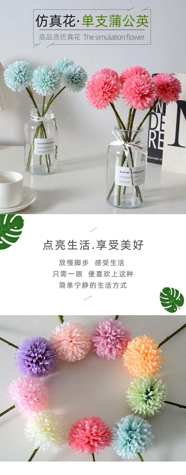 Flor de simulación de una sola cabeza de color otoñal, bola de diente de león, crisantemo, flor falsa, decoración para el hogar, sala de estar, accesorios de estudio de boda, venta al por mayor