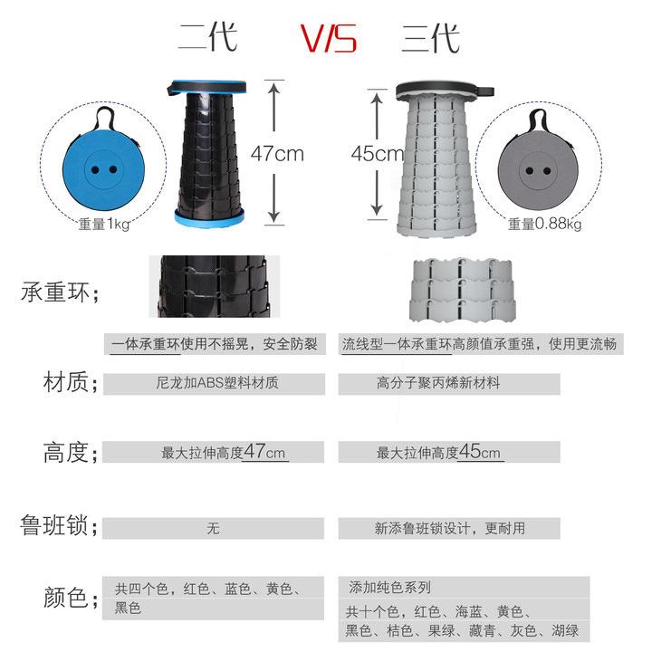 Taburete de plástico, taburete telescópico, taburete portátil para pesca al aire libre, taburete Mazar, taburete plegable, una generación de sillas plegables