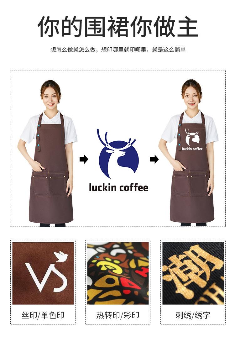 Delantal de lona con impresión de logotipo personalizado dedicado para catering tienda de té con leche y café florería celebridad de Internet impermeable ropa de trabajo para mujer