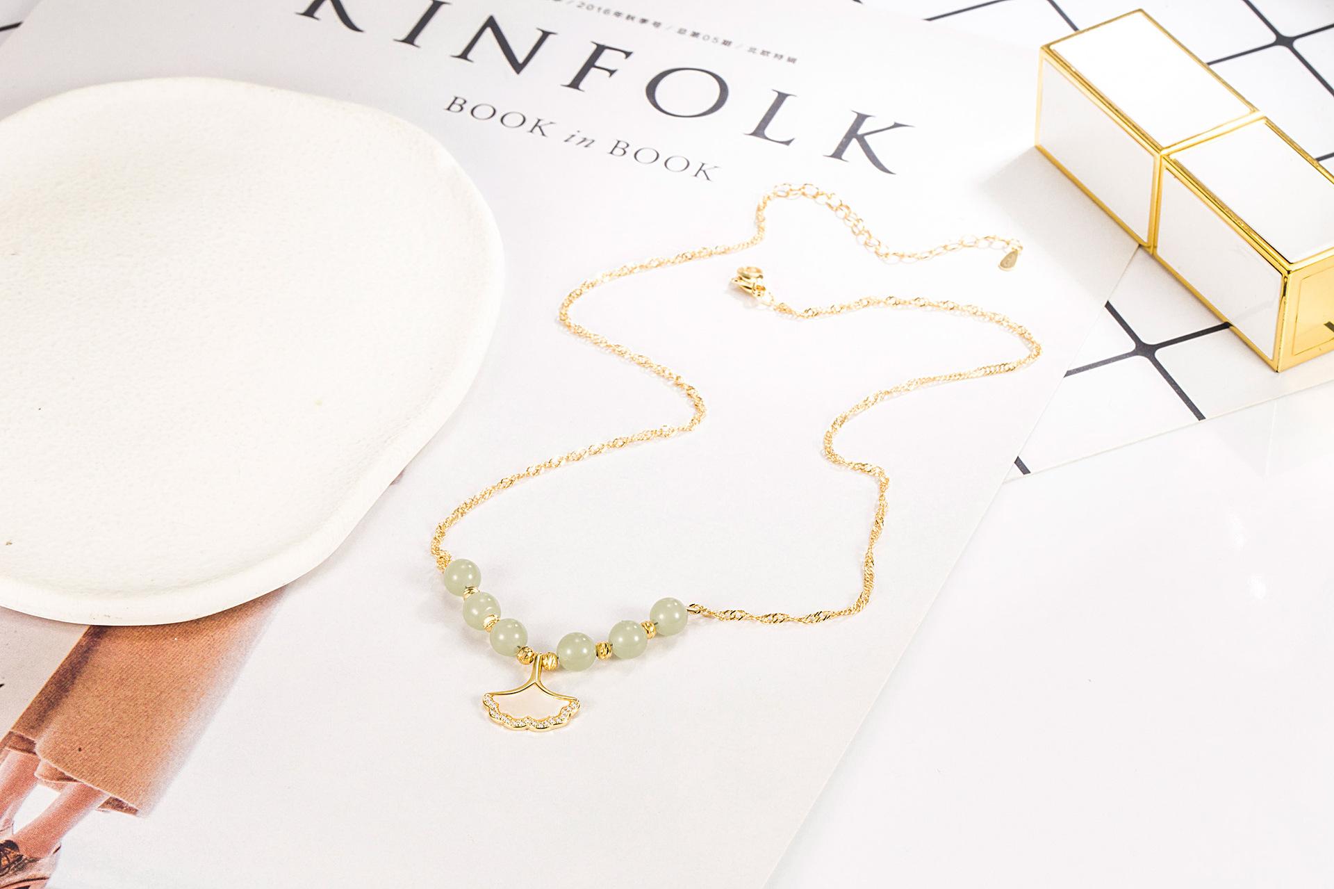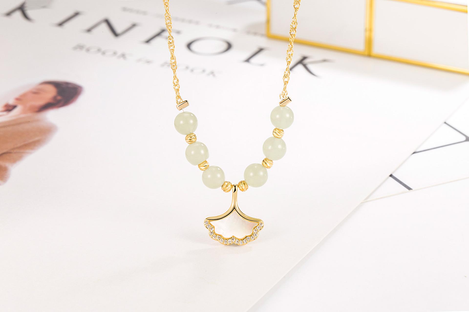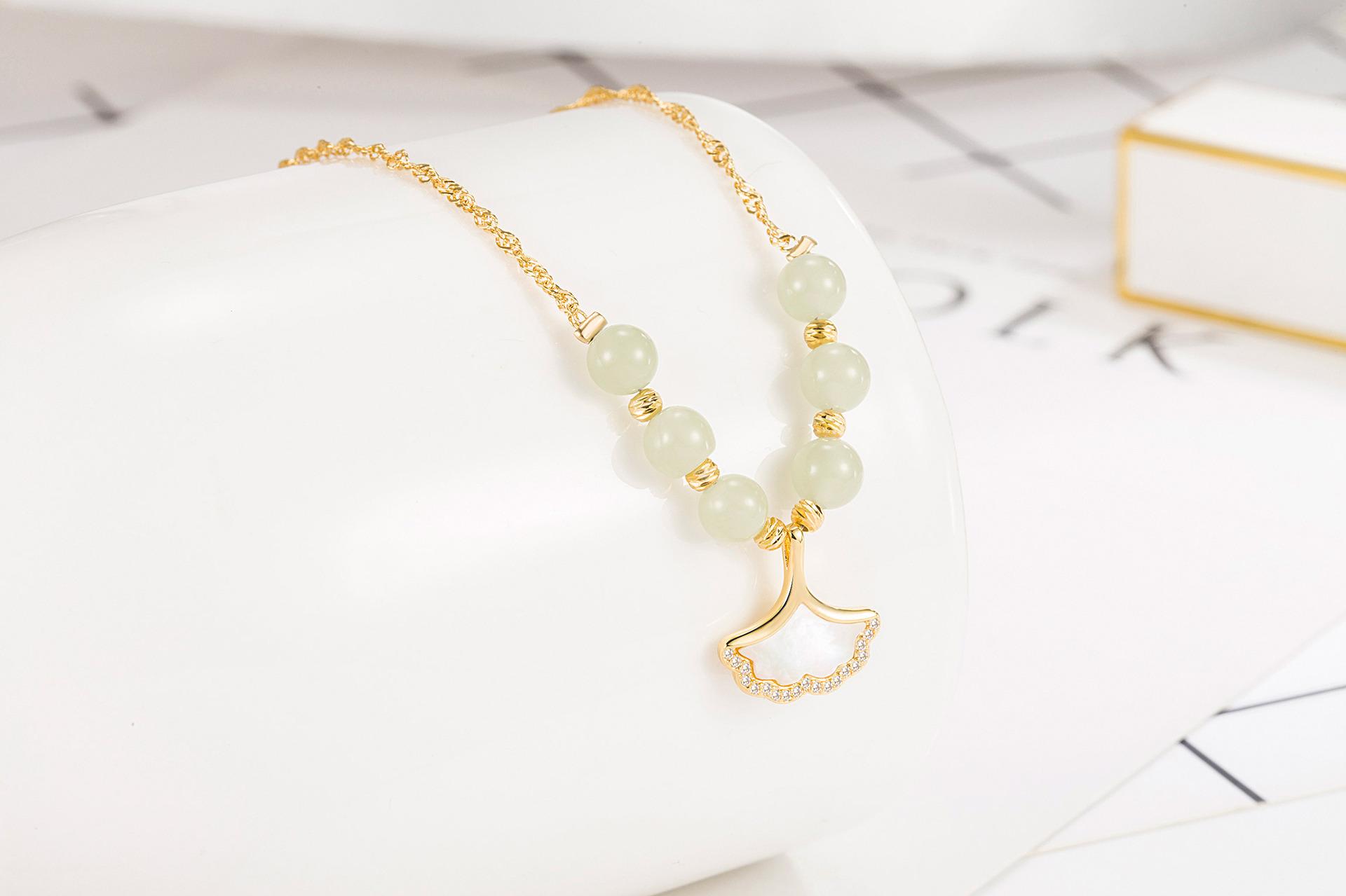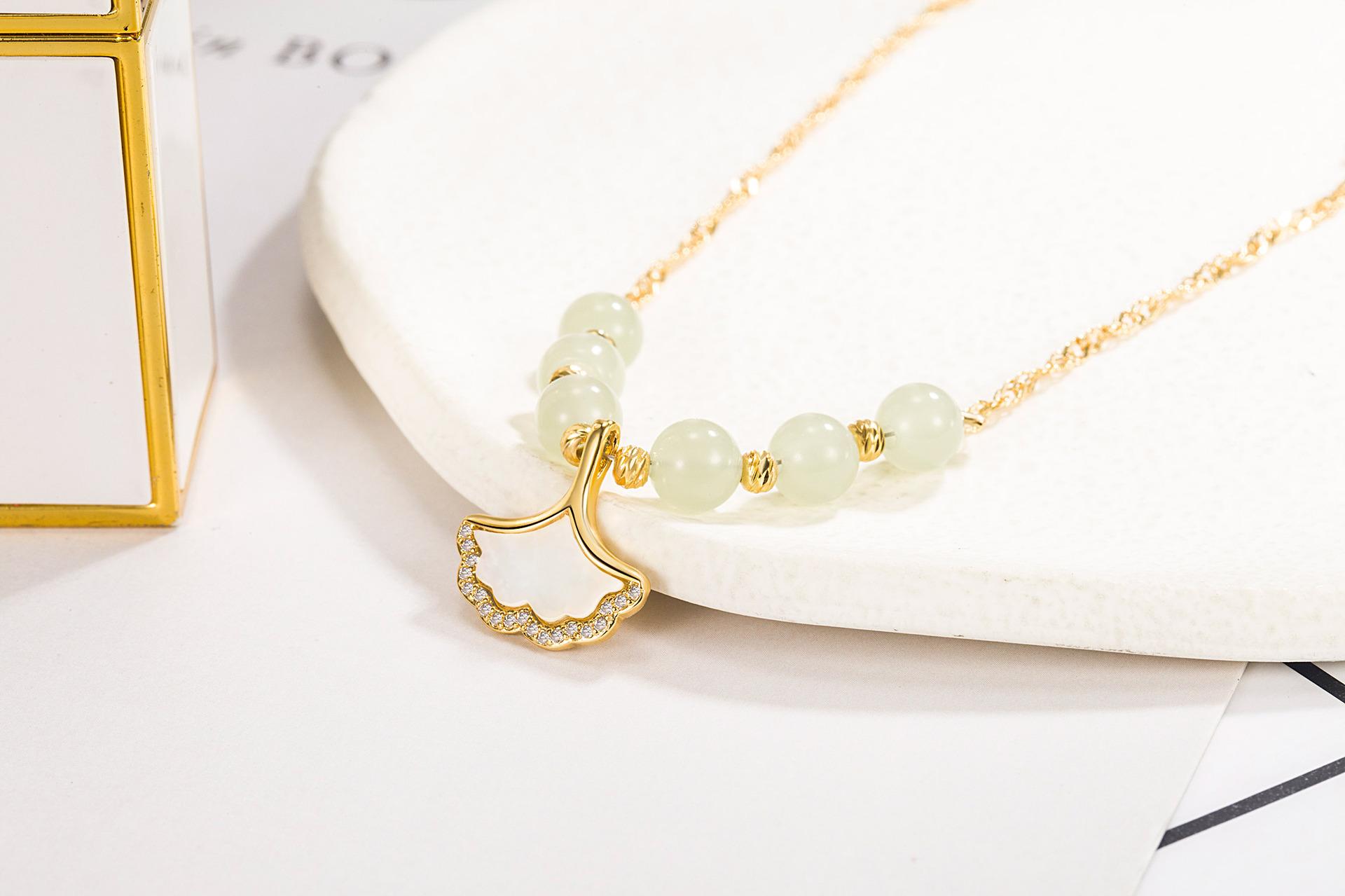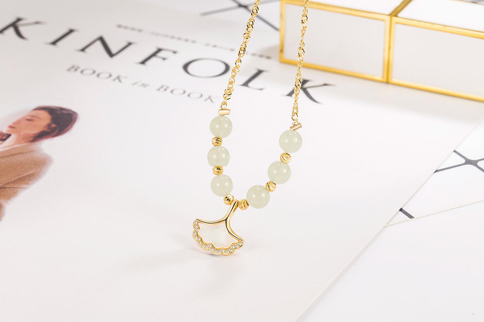 Collar de concha blanca de jade hetiano de albaricoque Sansheng, cadena de clavícula de hoja de ginkgo de nicho de lujo ligero para mujer, regalo de cumpleaños 2022