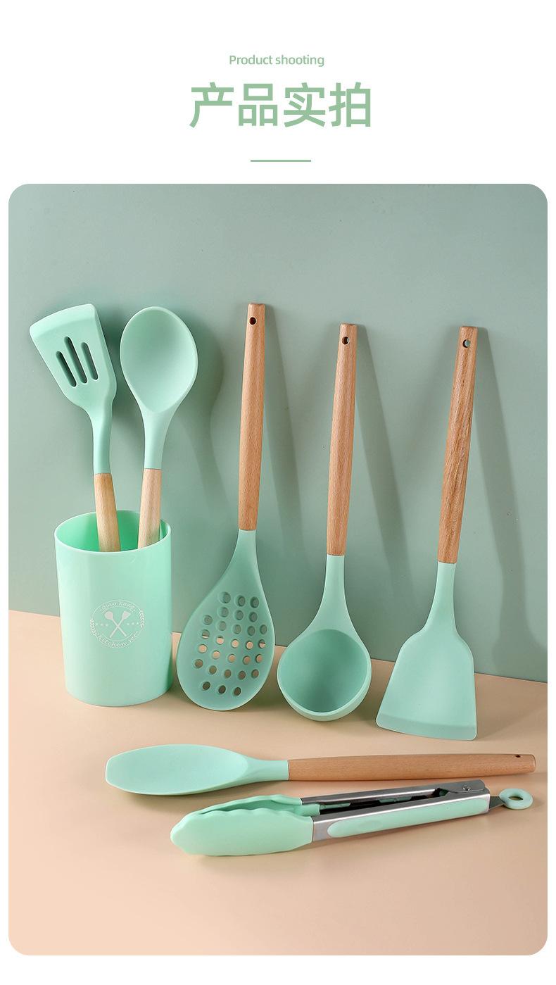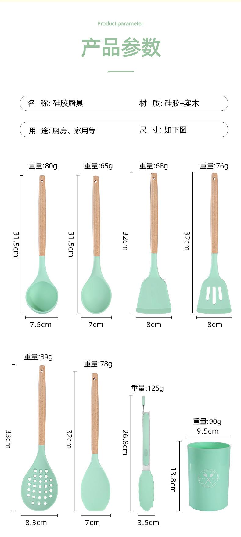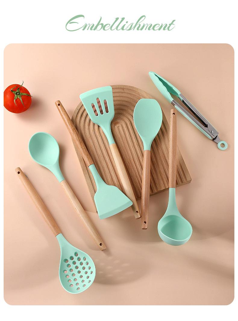 | Utensilios de cocina de silicona, suministros de cocina, cuchara, espátula, espátula, cepillo de aceite, batidor, batidor de huevos, juego de pinzas para alimentos |