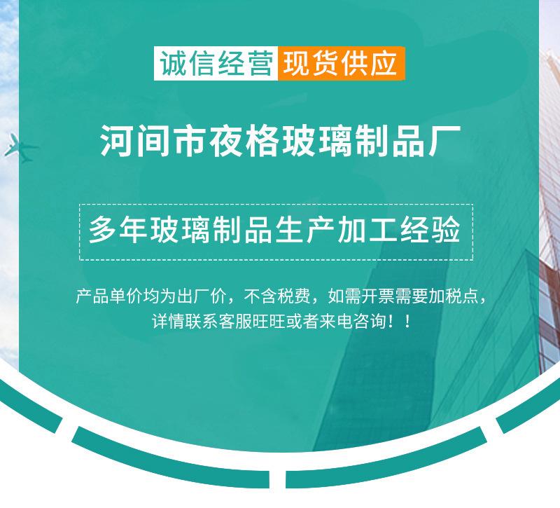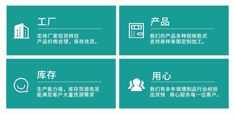 La Fábrica de Productos de Vidrio Hejian Yege produce y procesa frascos, tazas, teteras y otros productos de vidrio. Nuestra empresa cuenta con un sistema de gestión de calidad completo y científico. La Fábrica de Productos de Vidrio Hejian Yege se ha ganado la confianza de la industria por su integridad, solidez y calidad. Invitamos a personas de todos los ámbitos a visitarnos, brindar asesoramiento y negociar.