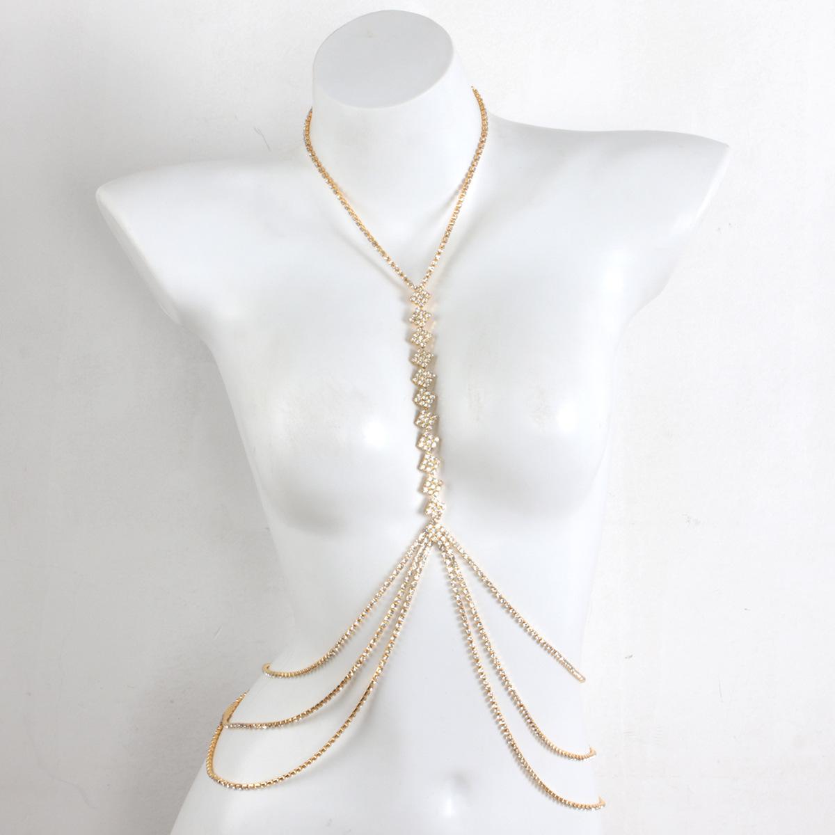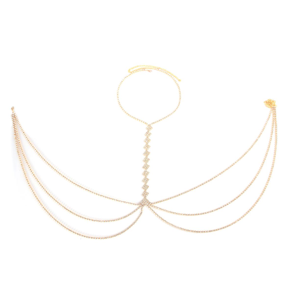 Accesorios de Cadena para el Pecho Sexy de Venta Caliente Transfronteriza Europea y Americana para Mujeres, Cadena Corporal de Diamantes de Imitación para Fiesta de Club Nocturno Bikini Súper Brillante