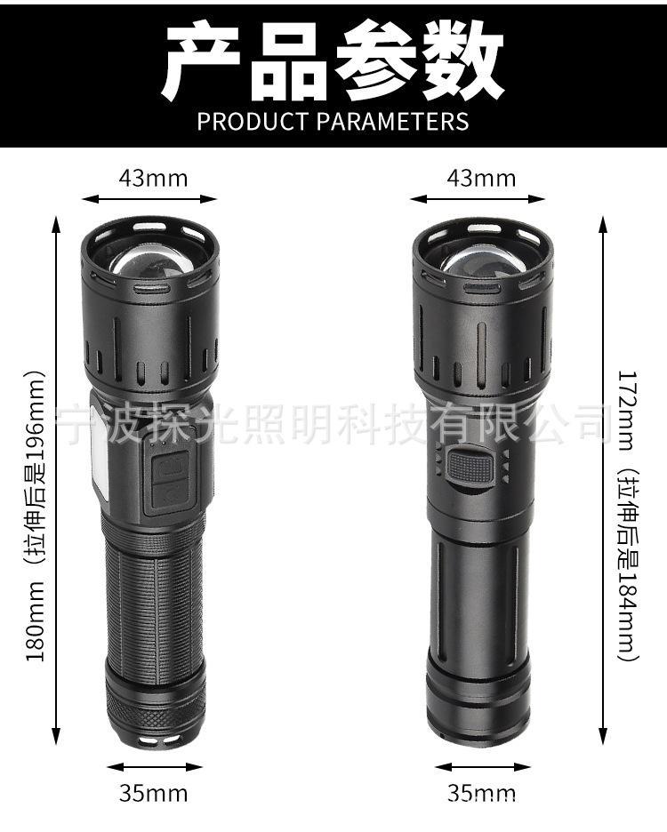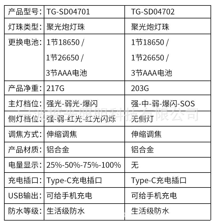 【Peso del producto】:SD04701 versión con luz lateral: individual 277G, juego de batería 18650 320G, juego 26650 362G;SD04702 sin luz lateral: juego de batería individual 257G, juego de batería 18650 300G, juego de batería 26650 342G.