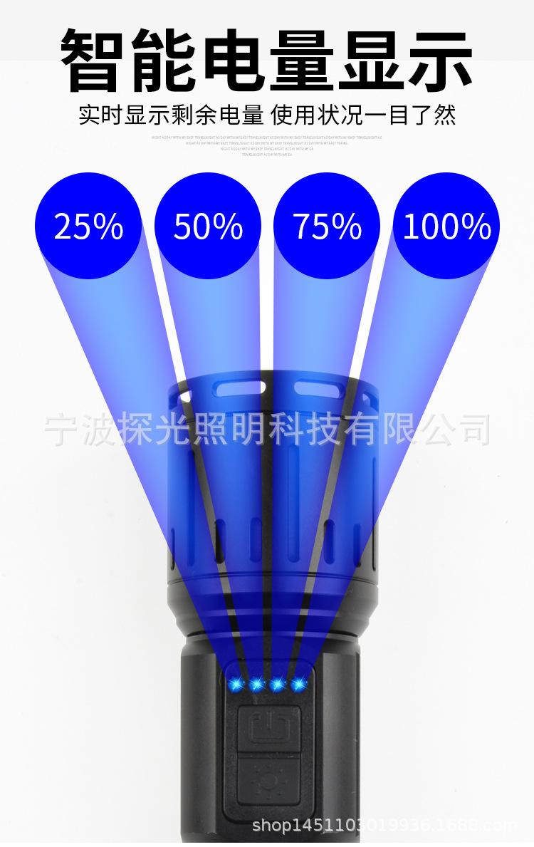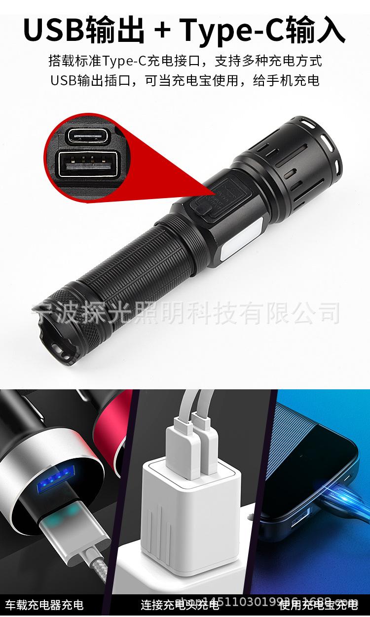 [Características del producto]: Punto de luz redondo, alto brillo y perlas láser blancas de larga distancia; luz indicadora de energía para controlar el uso de energía en cualquier momento, interfaz conveniente TIPO-C y equipado con puerto de salida USB (se puede usar para la carga de emergencia de teléfonos móviles y otros productos electrónicos).
