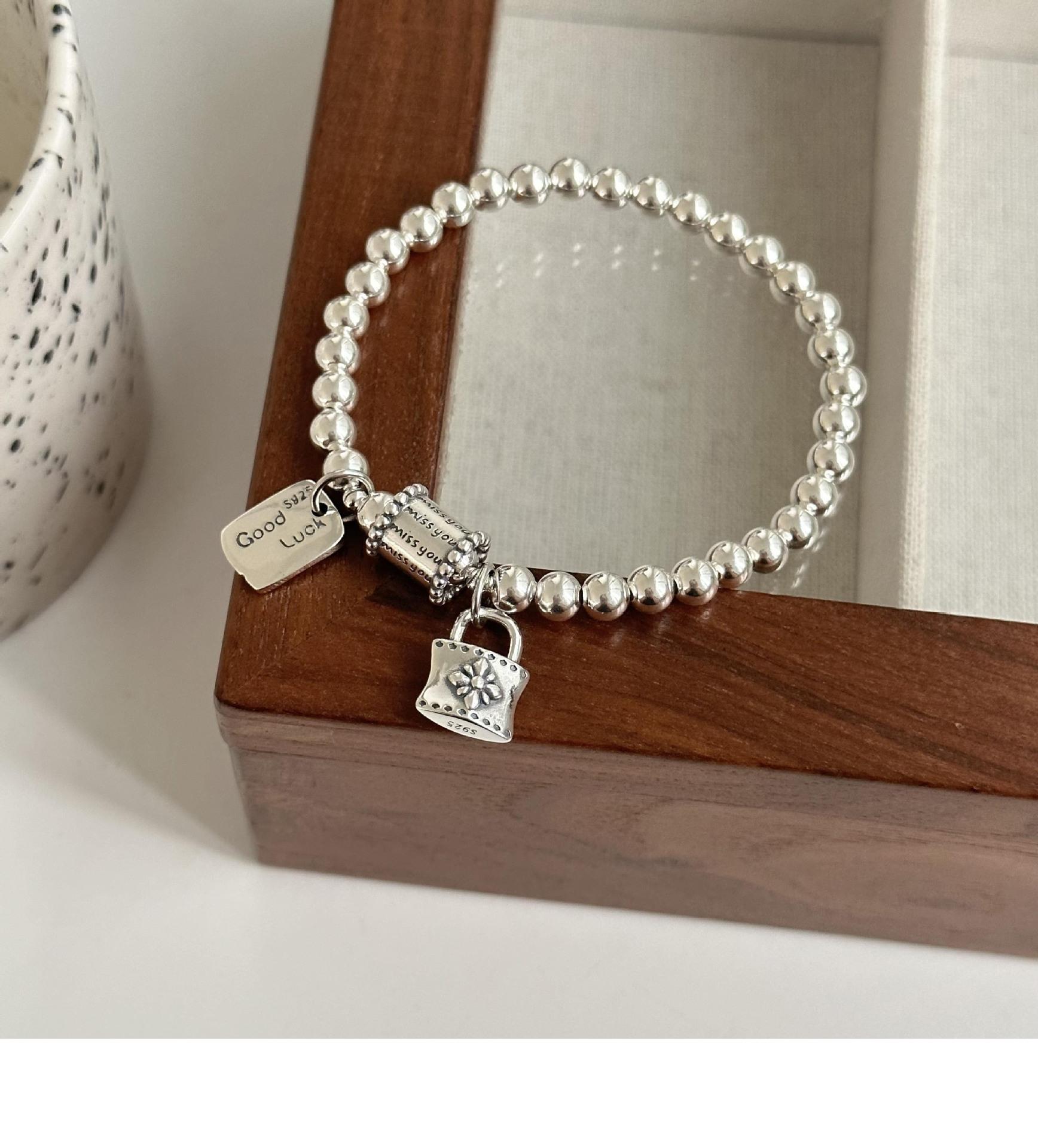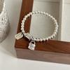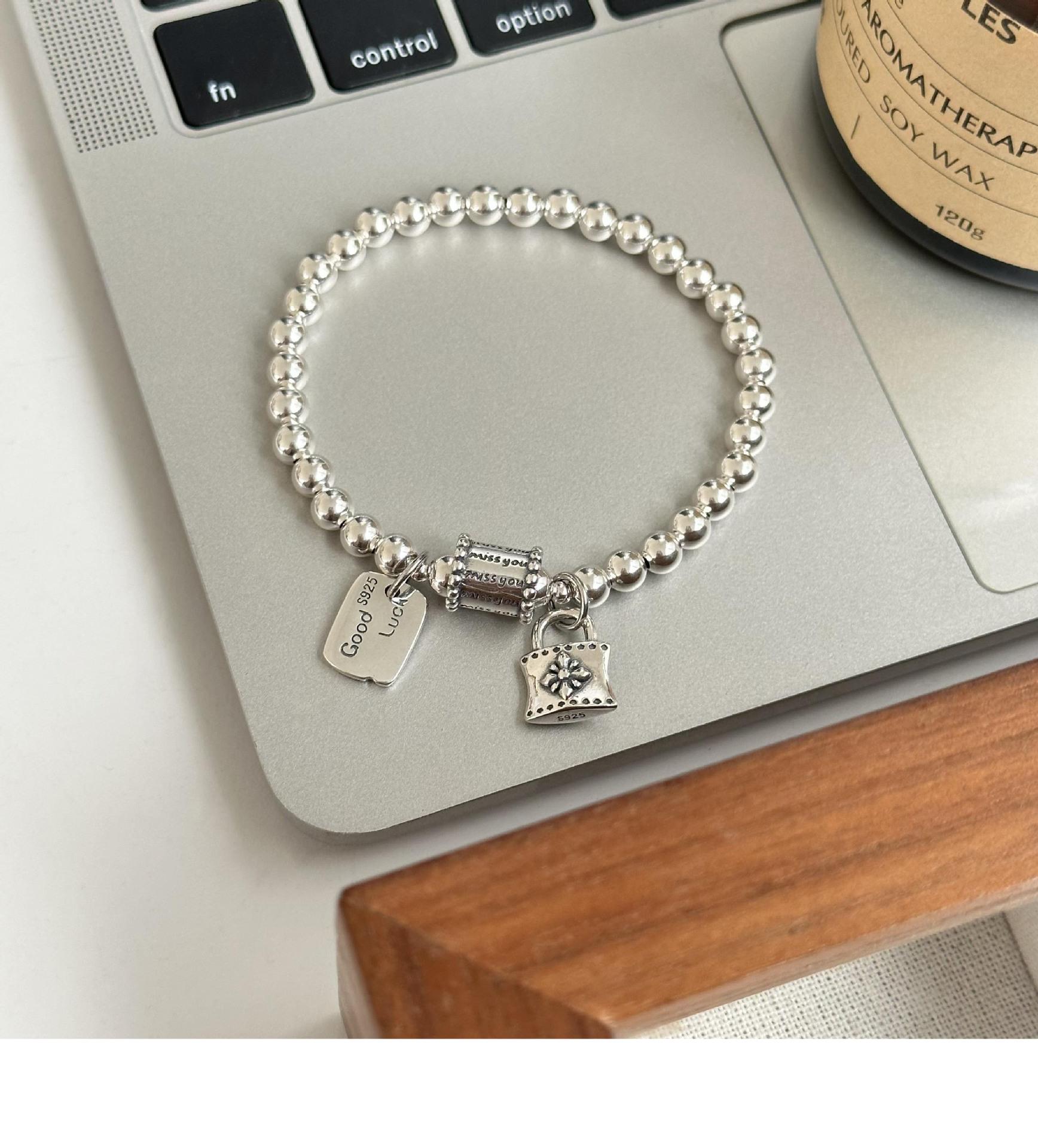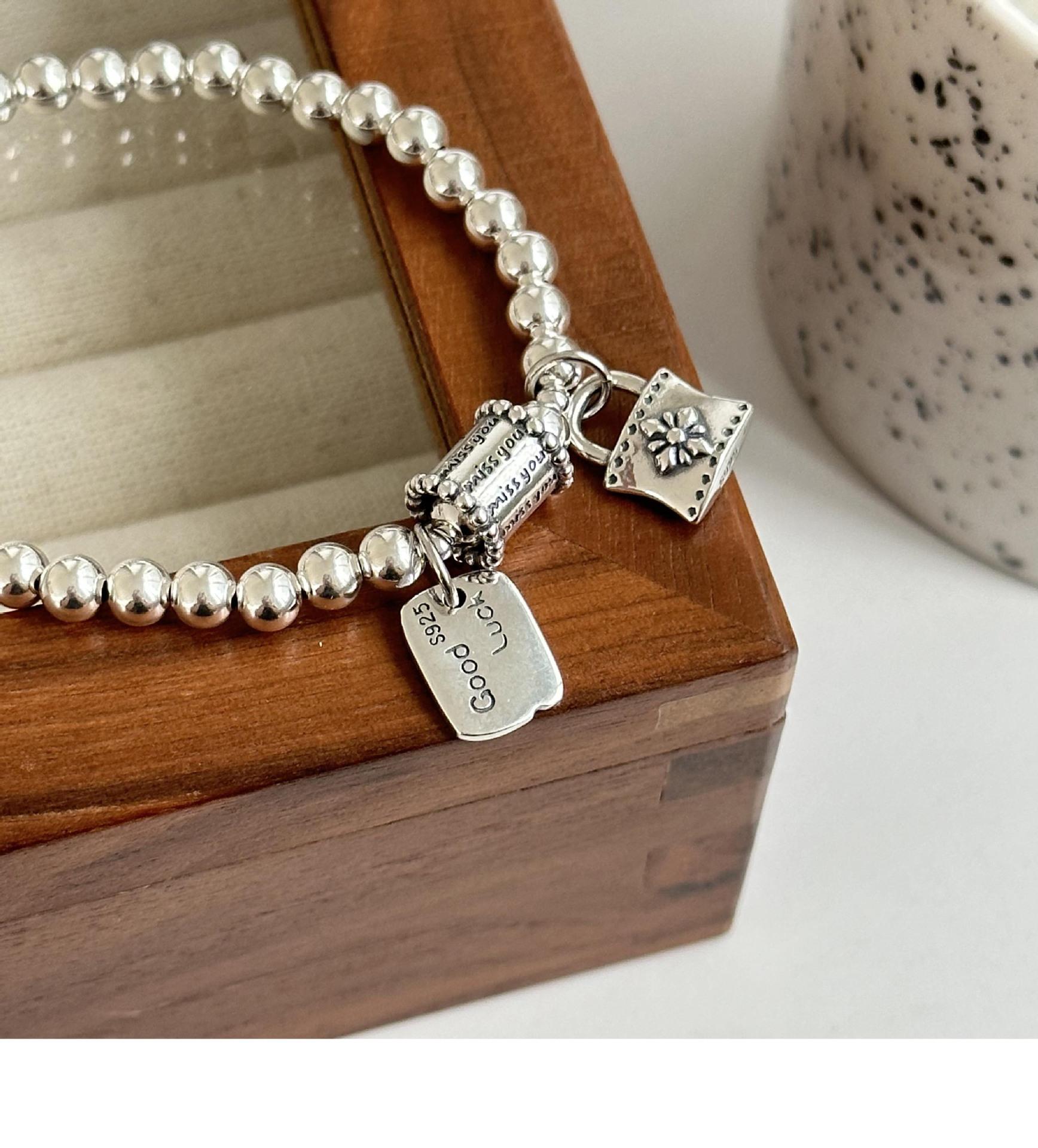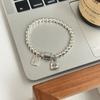 Pulsera de cuerda elástica con cuentas redondas y cierre cruzado de marca cuadrada estilo INS de Qixi, pulsera retro con personalidad femenina