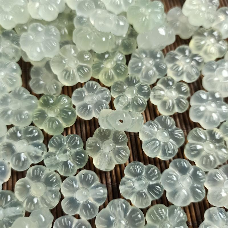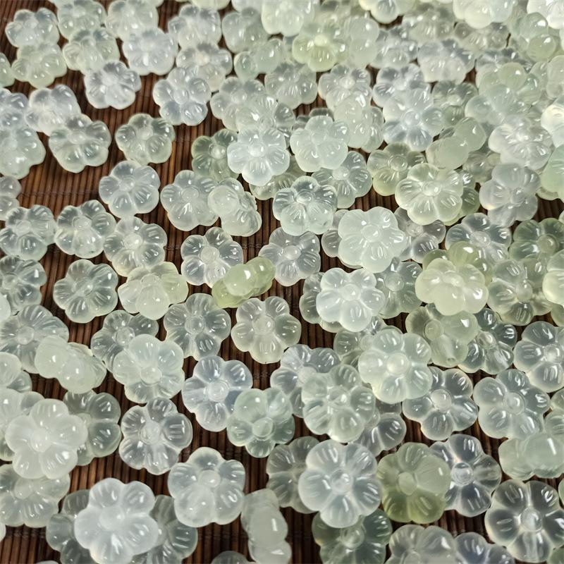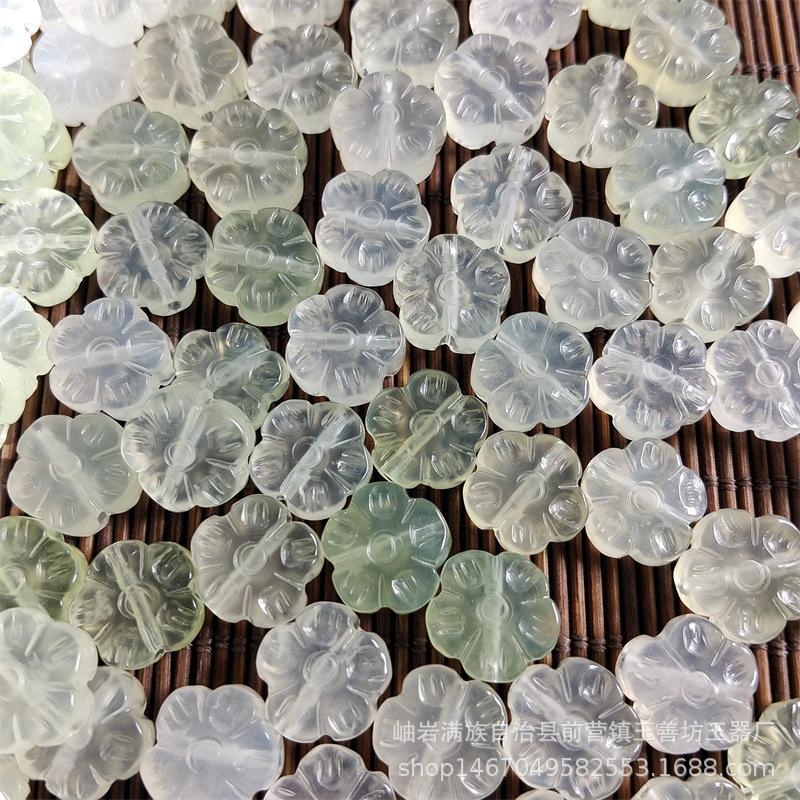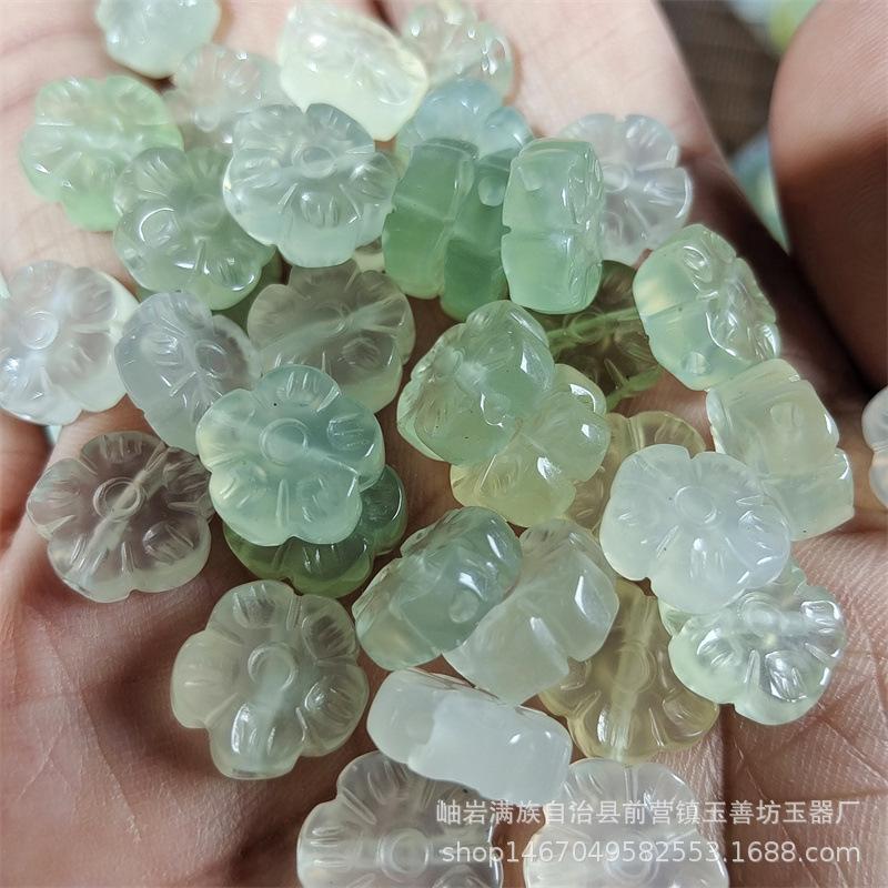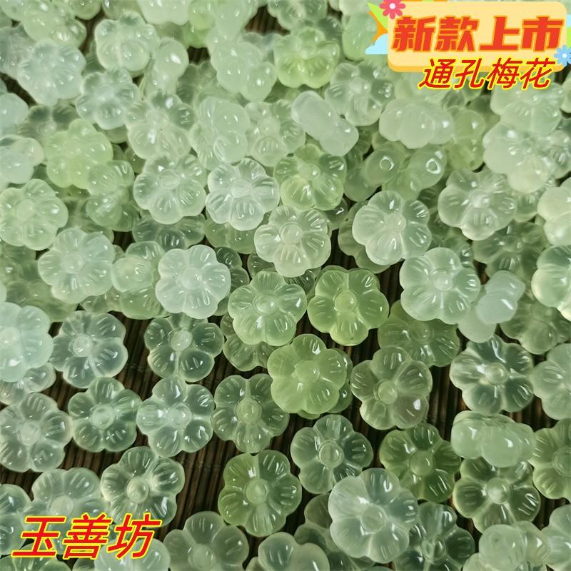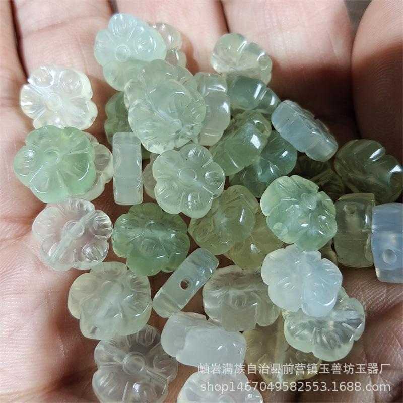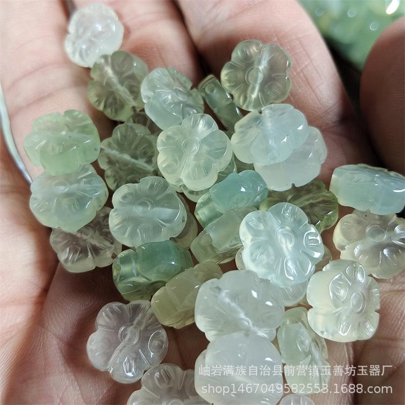 Colgante de jade con flor de ciruelo de jade, accesorios hechos a mano con orificio pasante, fabricantes de flores de jade, venta al por mayor, pequeño colgante de jade con flor de durazno.