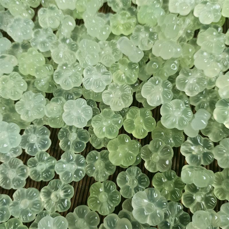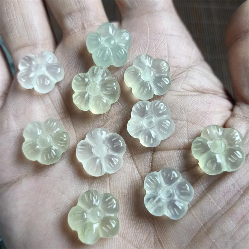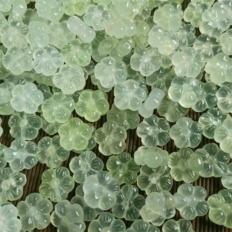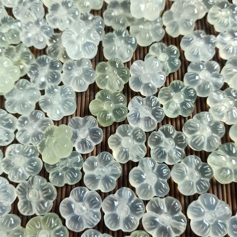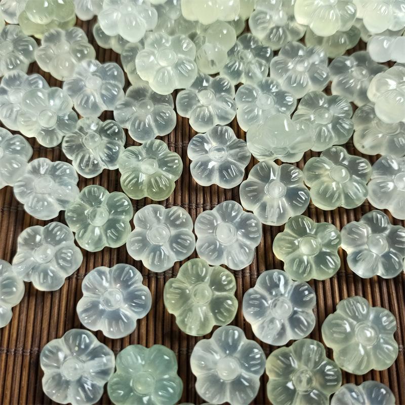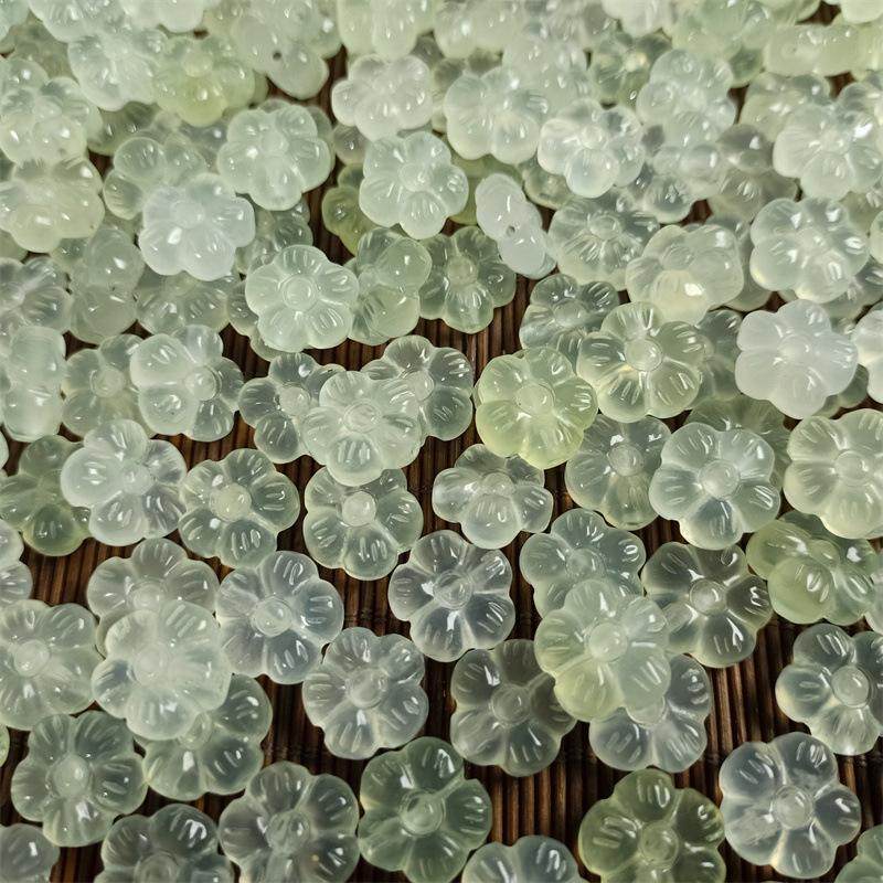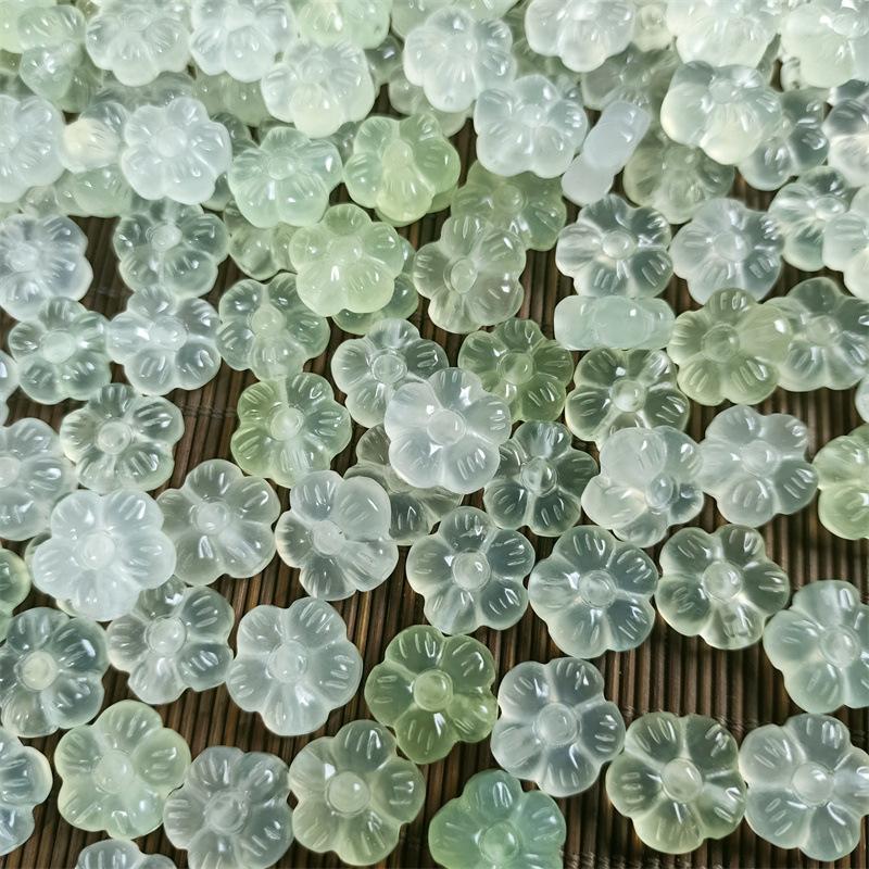 Colgante de jade con flor de ciruelo de jade, accesorios hechos a mano con orificio pasante, fabricantes de flores de jade, venta al por mayor, pequeño colgante de jade con flor de durazno.