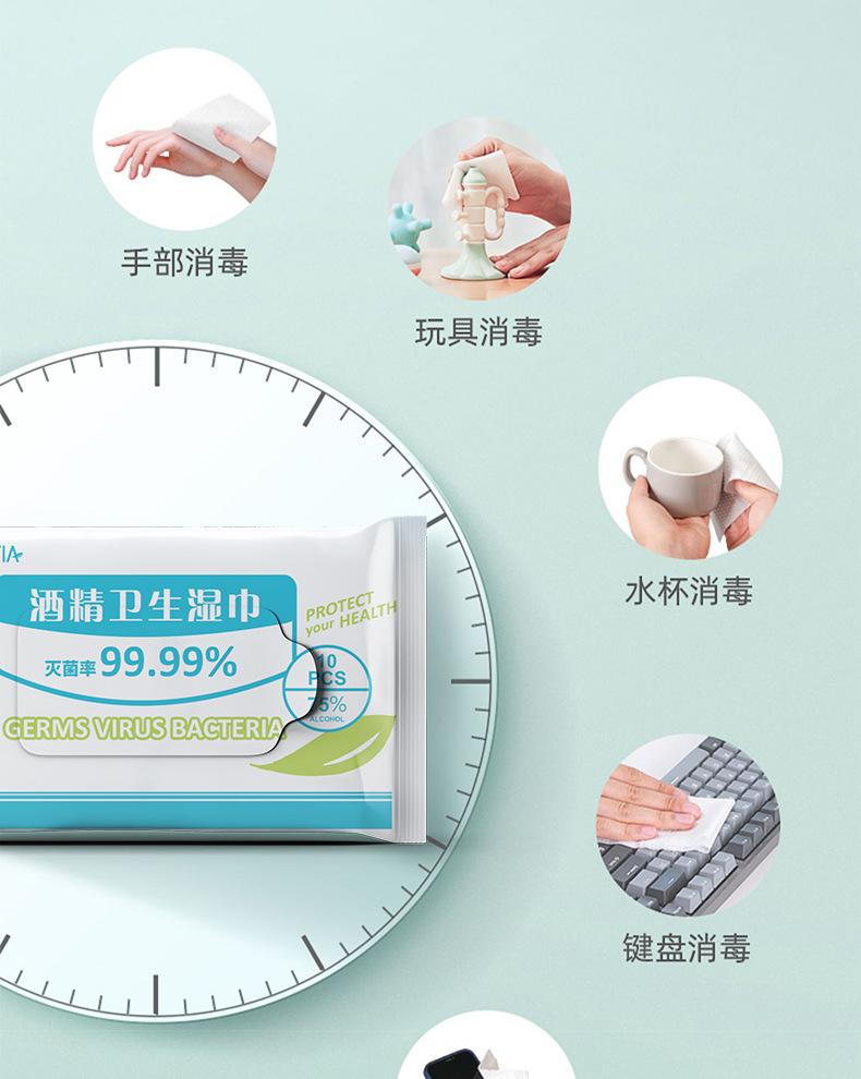 Toallitas húmedas desechables portátiles con alcohol de 75 grados, toallitas húmedas de limpieza, paquete pequeño de 10 toallitas húmedas de esterilización protectora para el hogar