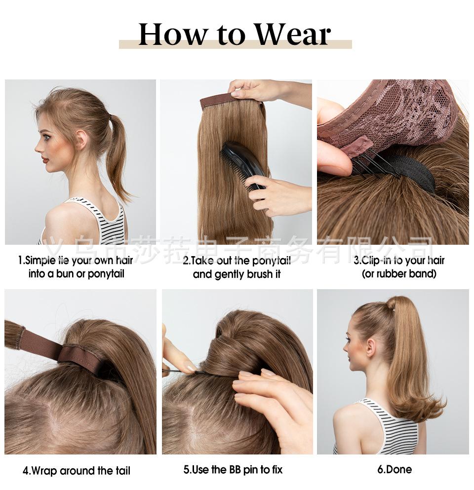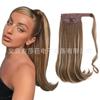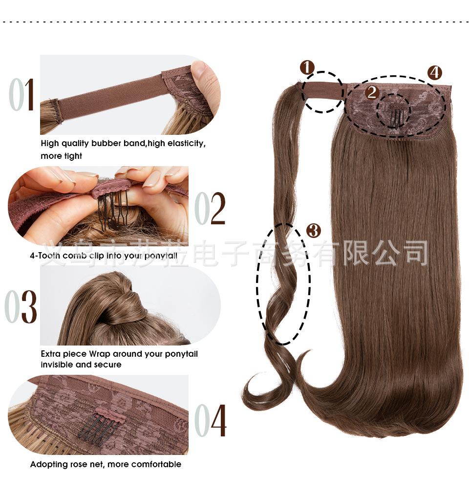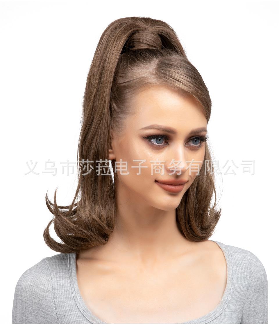 Peluca de seda de alta temperatura europea y americana transfronteriza con clip, coleta enrollada para mujer, micro-rizada, de fibra química, coleta para el cabello, fabricante