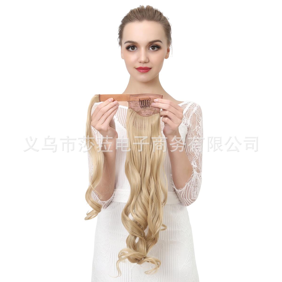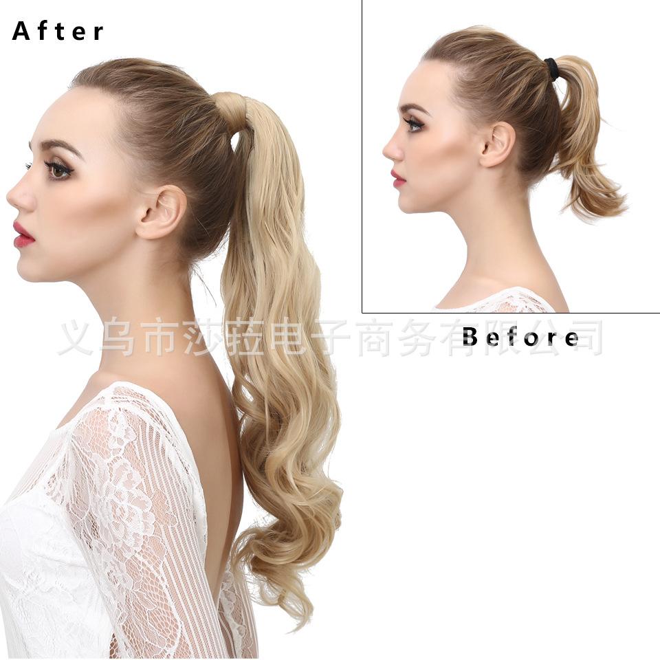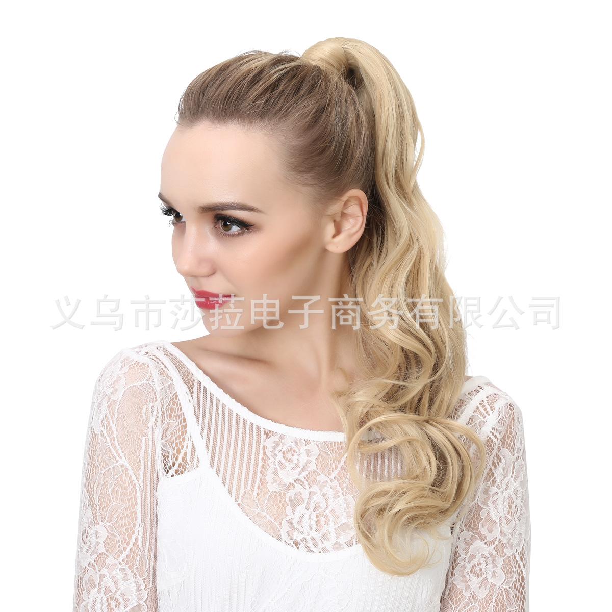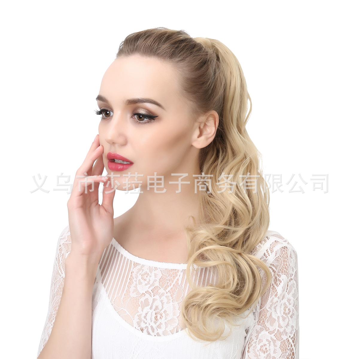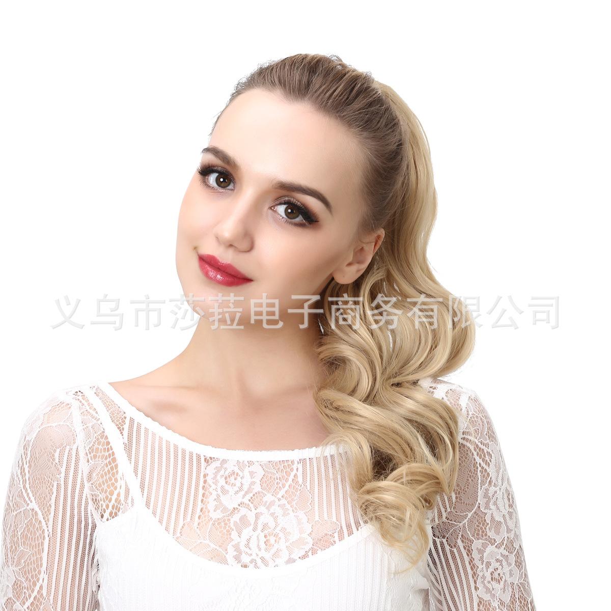 Peluca SARLA europea y americana, peluca natural esponjosa, cola de caballo femenina, cabello medio largo y rizado, cola de caballo con velcro, comercio exterior transfronterizo