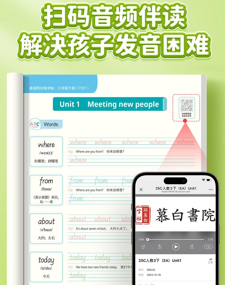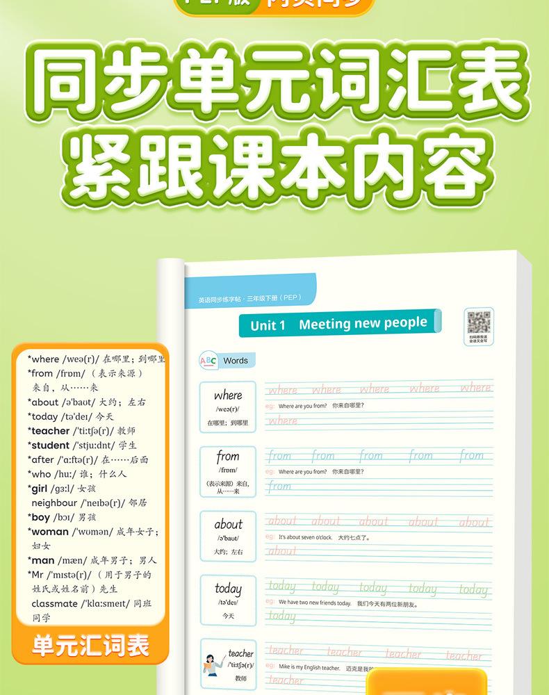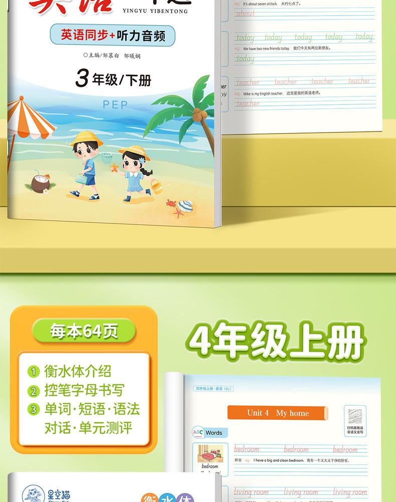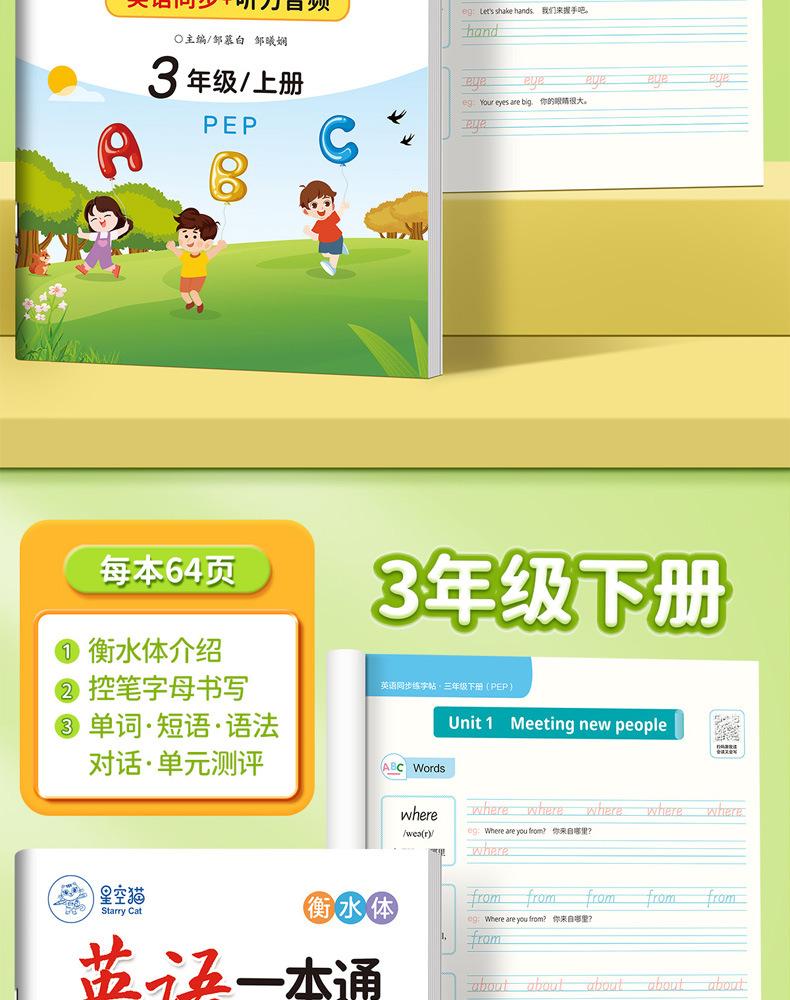 Cuaderno de inglés Hengshui para el punto de partida de tercer grado Libro de texto de la Edición de Educación Popular Cuaderno sincrónico para la práctica de caligrafía