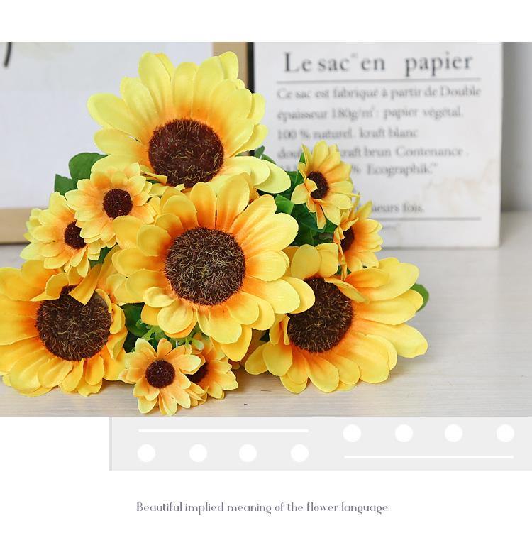 Girasol, flor artificial, girasol, venta al por mayor, decoración del hogar, accesorios de decoración, fábrica de flores de tela de seda, flor falsa