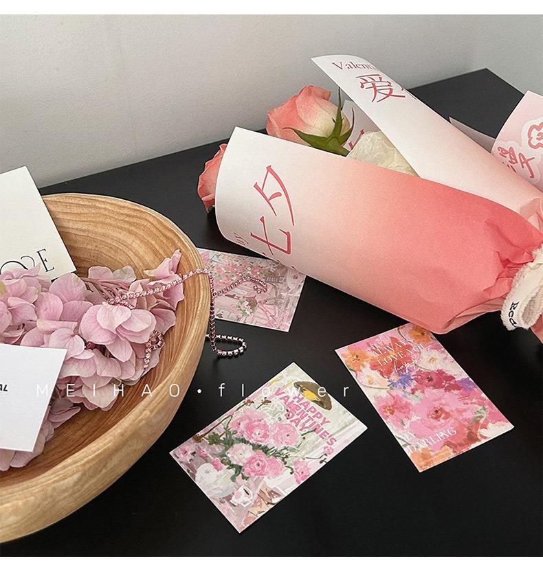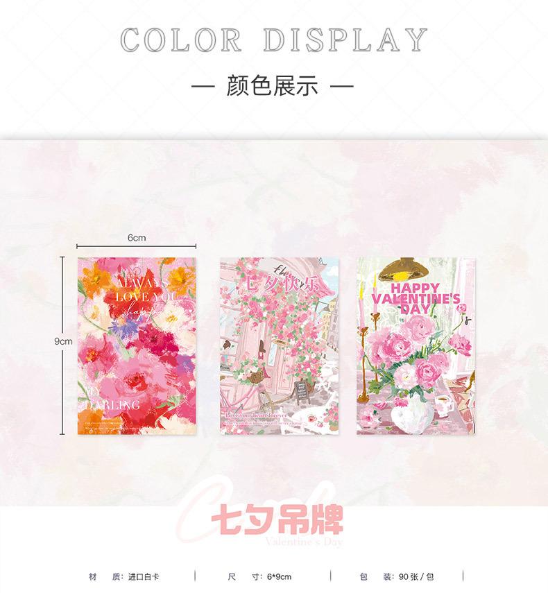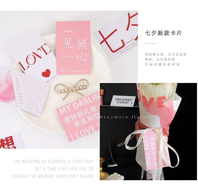 Tarjeta de felicitación del Día de San Valentín de Tanabata, tarjeta colgante floral, tarjeta con mensaje, etiqueta de ramo, tarjeta de decoración de regalo de flores, tarjeta de caja de regalo