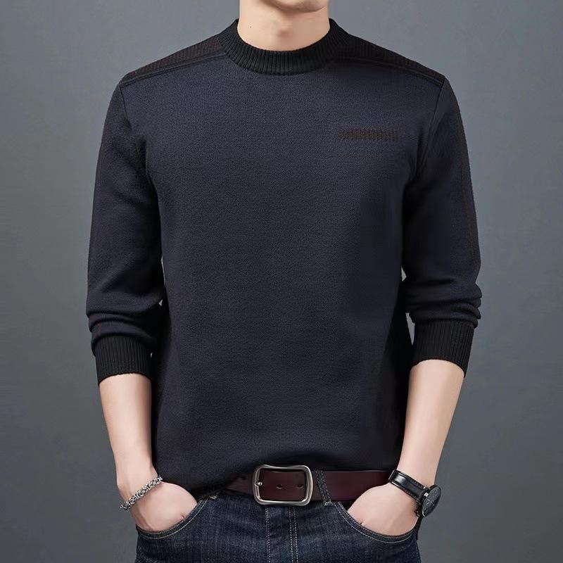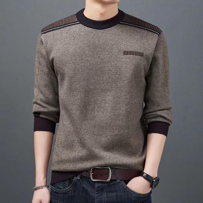 Suéter de invierno para hombre, forro polar, grueso, cuello redondo, suelto, parte superior, versátil, nuevo y cálido, suéter para hombre