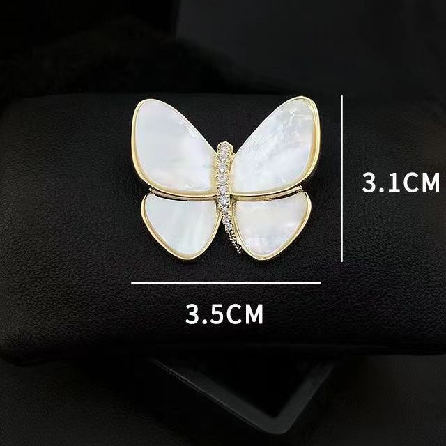 Broche de Perlas y Diamantes Brillantes de Lujo Ligero de Fábrica Transfronteriza para Mujer, Corsage de Mariposa de Alta Gama, Botón para Bufanda, Pin para Traje