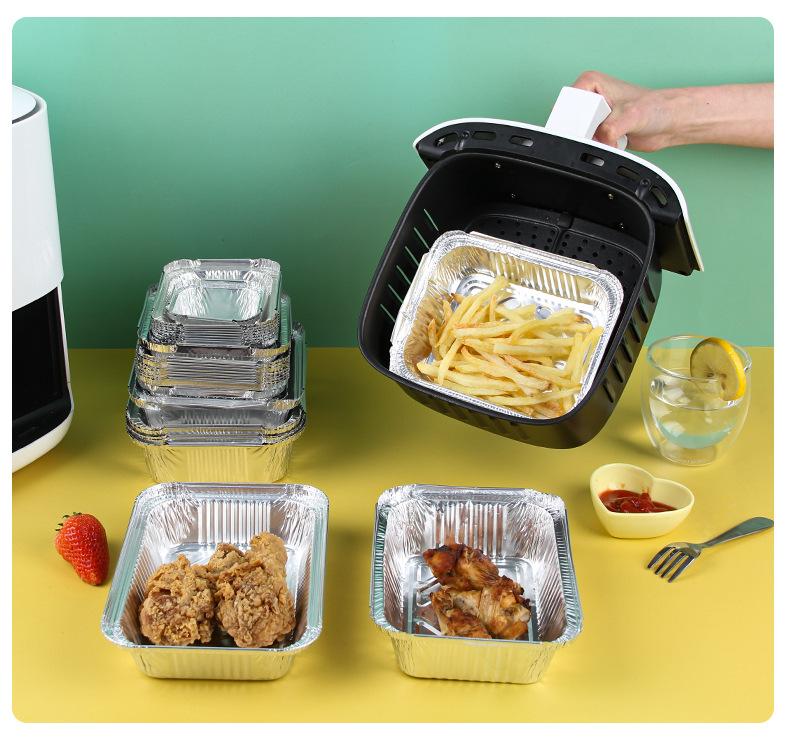 Caja de hojalata desechable, plato especial de hojalata para freidora de aire, horno doméstico, barbacoa, recipiente cuadrado de hojalata.