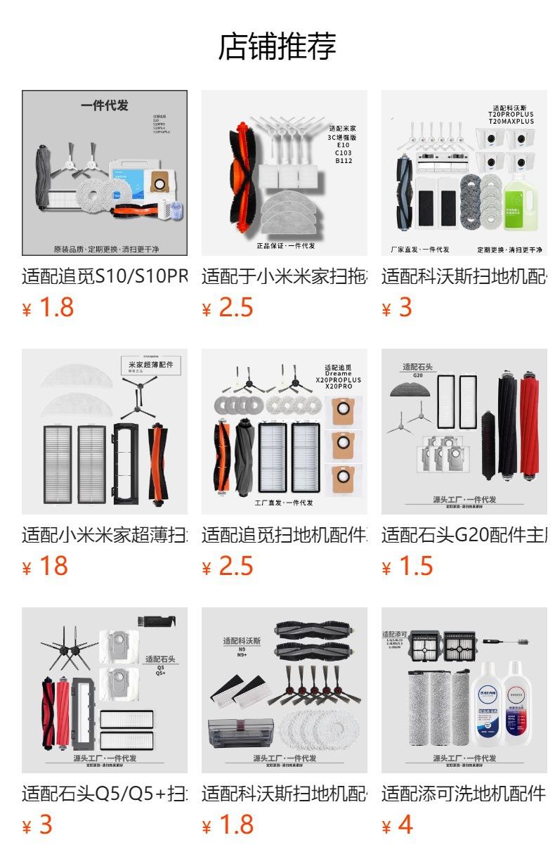 Main brush, A pair of side brushes, A pair of filter screens, Dust bag, Rag, Rag bracket, Main brush cover