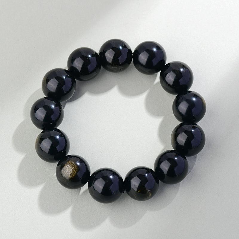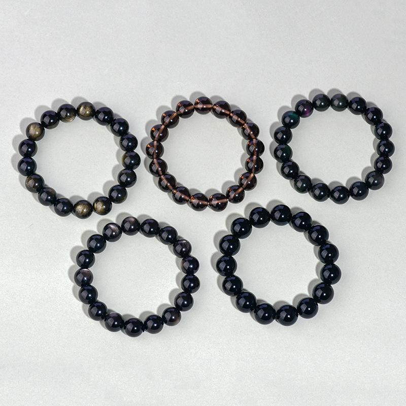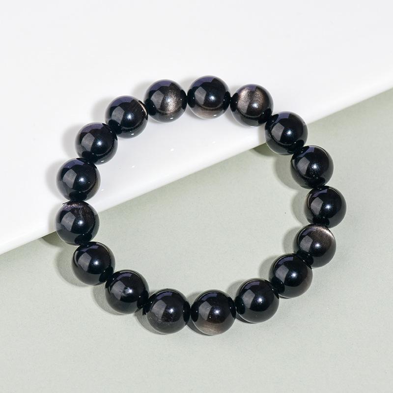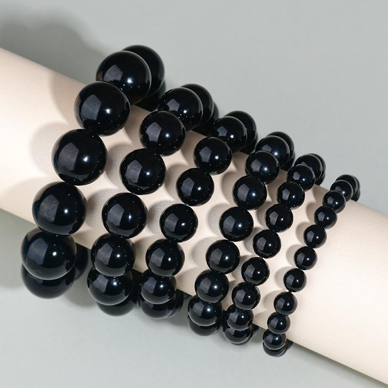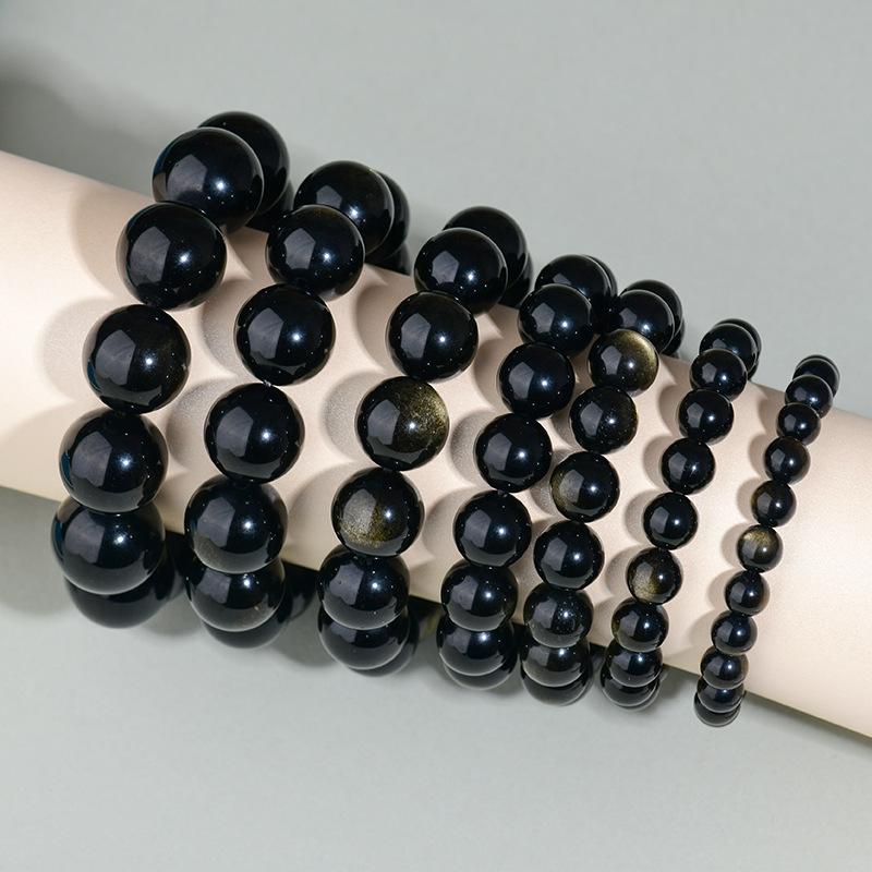 [Nombre del producto]: Pulsera de cuentas redondas de obsidiana