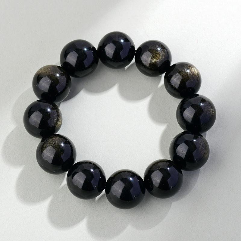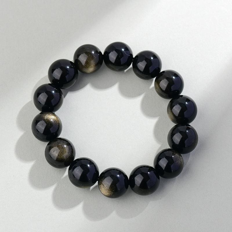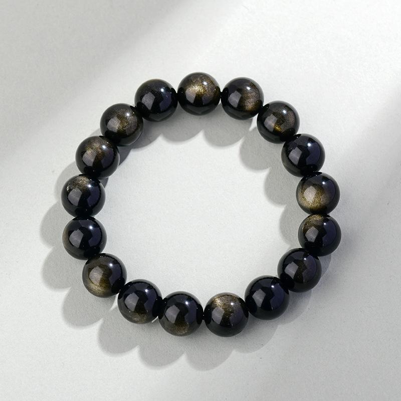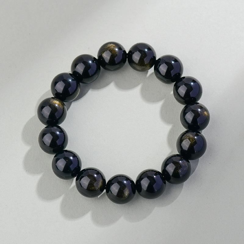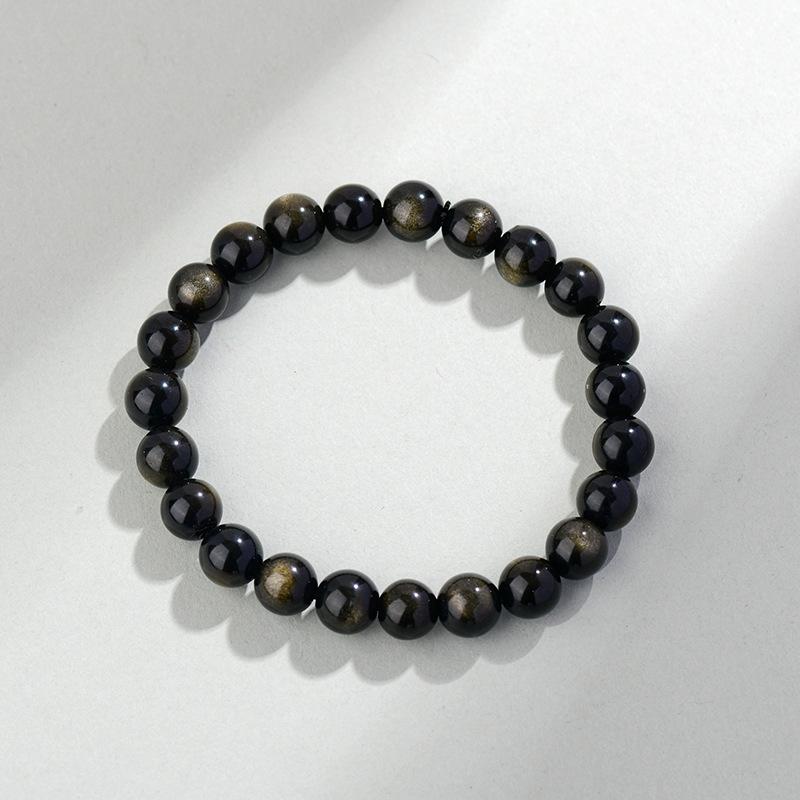 [Nombre del producto]: Pulsera de cuentas redondas de obsidiana