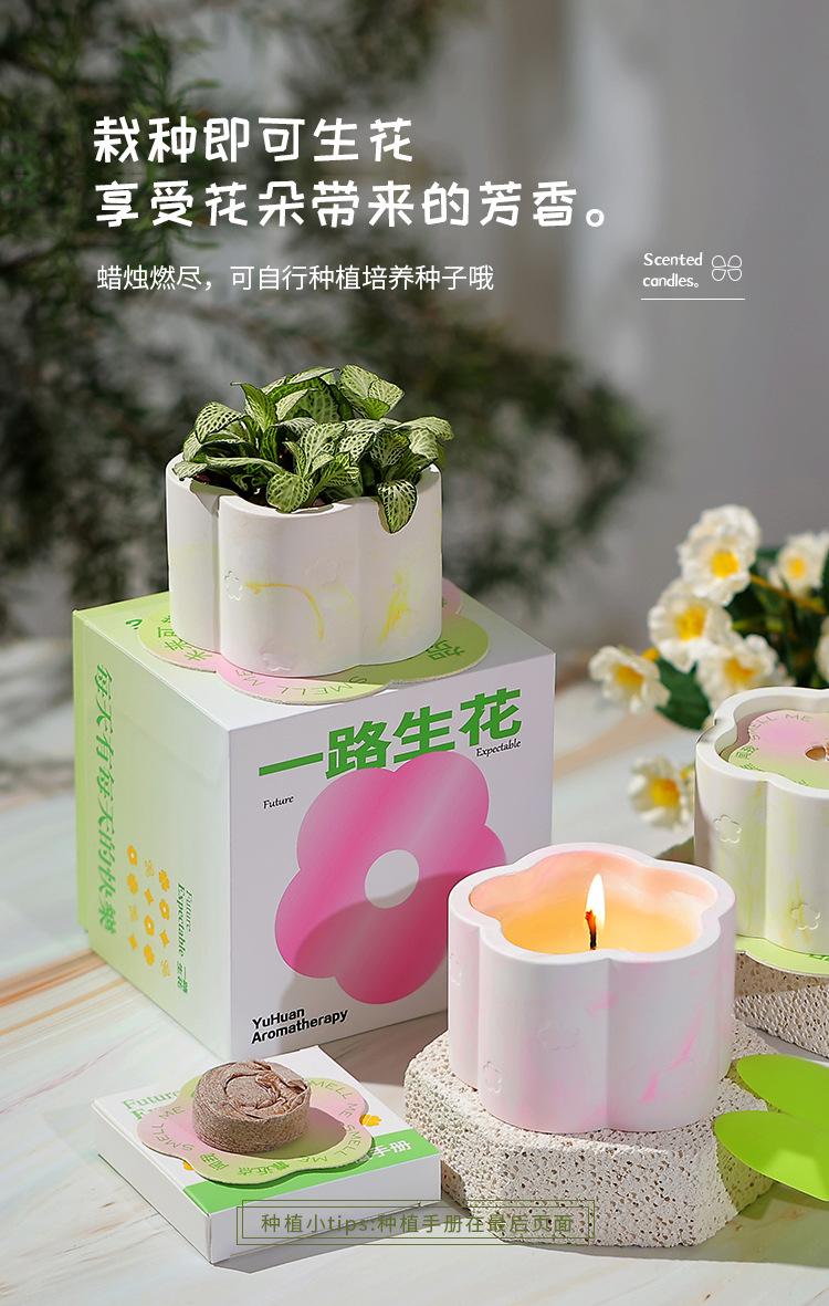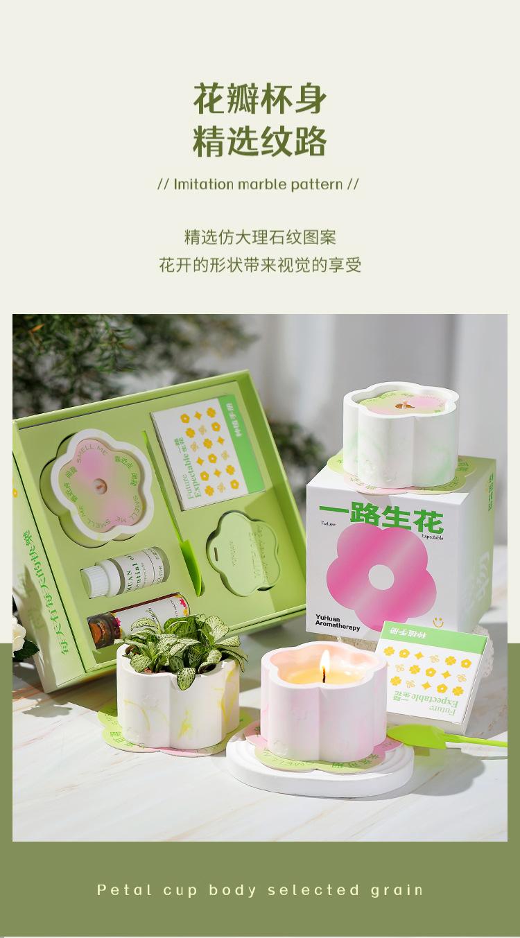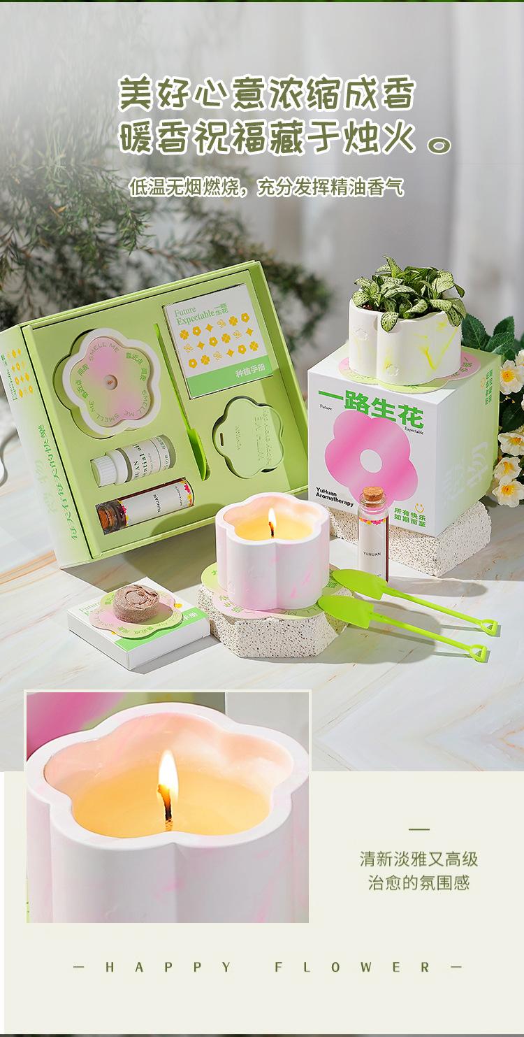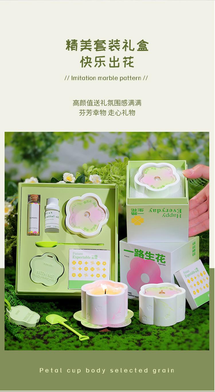 Caja de regalo de vela de aromaterapia Happy Flower nicho fragancia avanzada decoración aceite esencial cera de soya regalo regalo a mano mayoreo