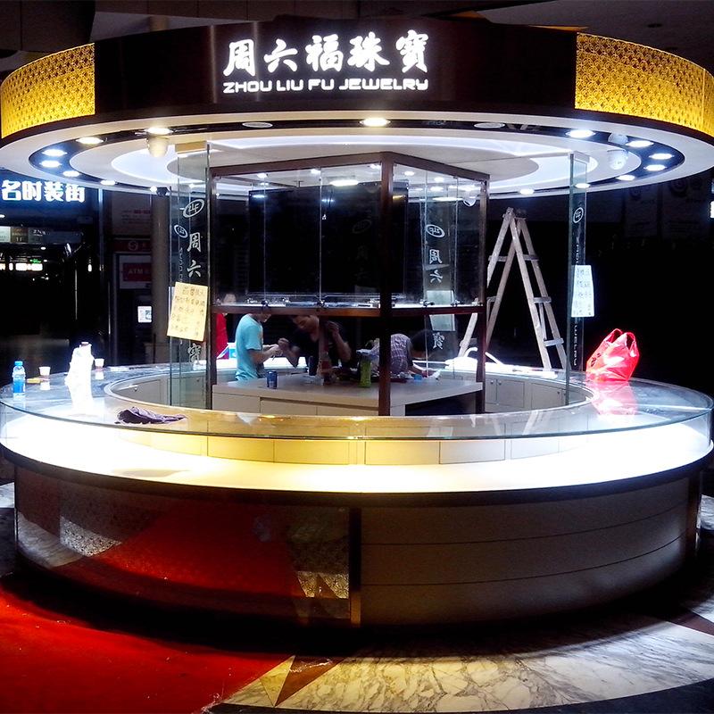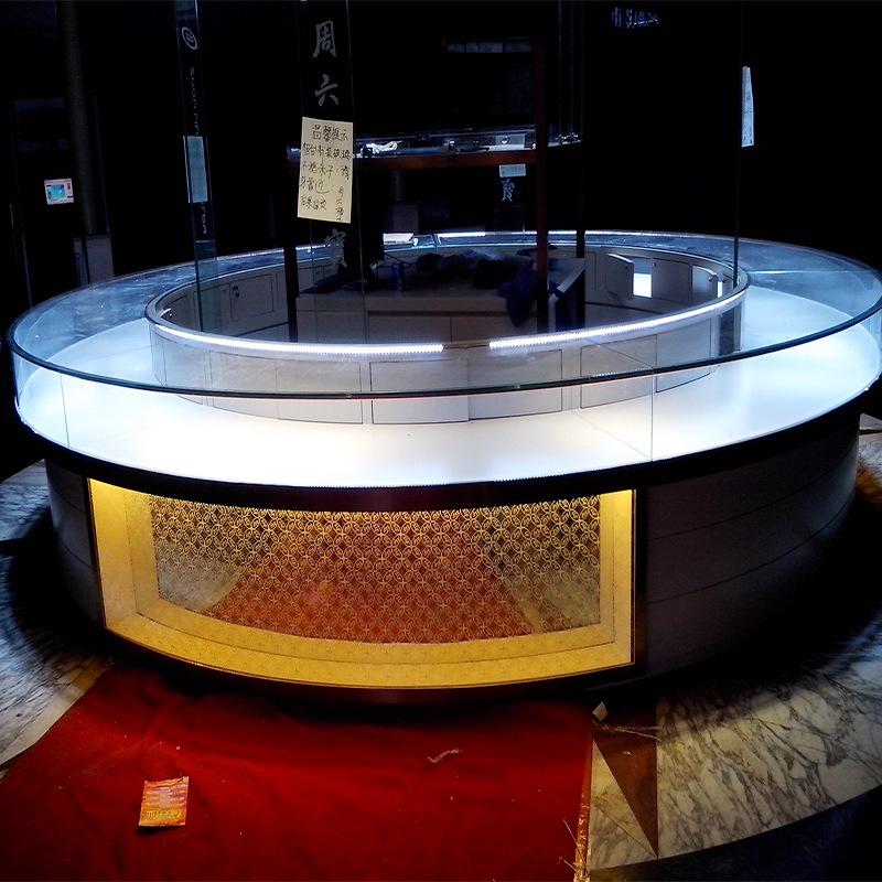 Mostrador Curvo Redondo para Exhibición de Joyería Gabinete Isla Central para Centro Comercial Gabinete de Vidrio para Joyería Gabinete para Joyería de Jade