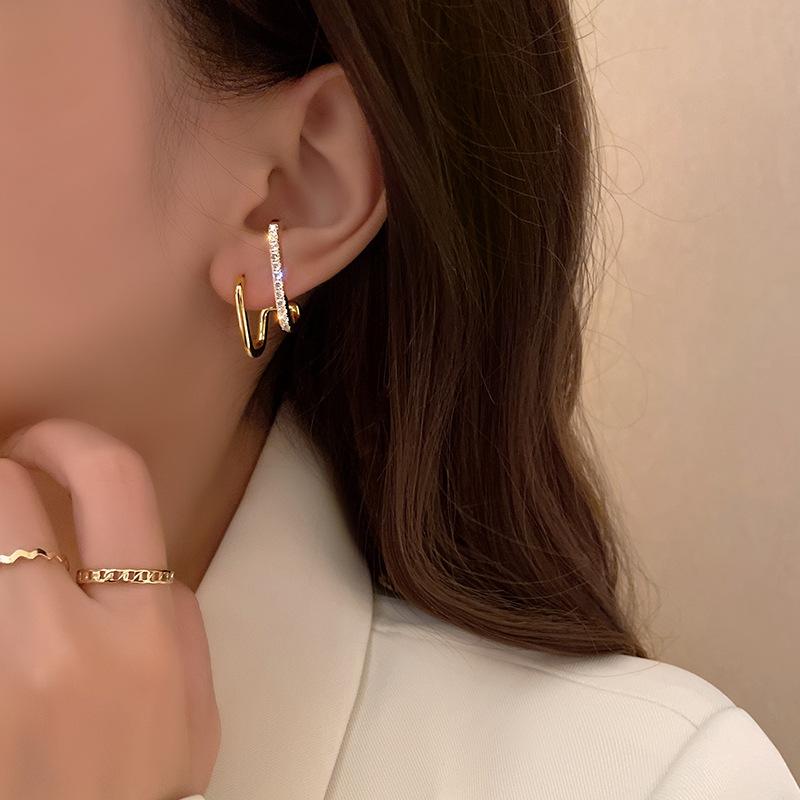 Pendientes de diseño geométrico, pendientes de diamantes con sentido avanzado, nuevos pendientes de moda coreanos elegantes de celebridades de Internet, pendientes de moda para mujer