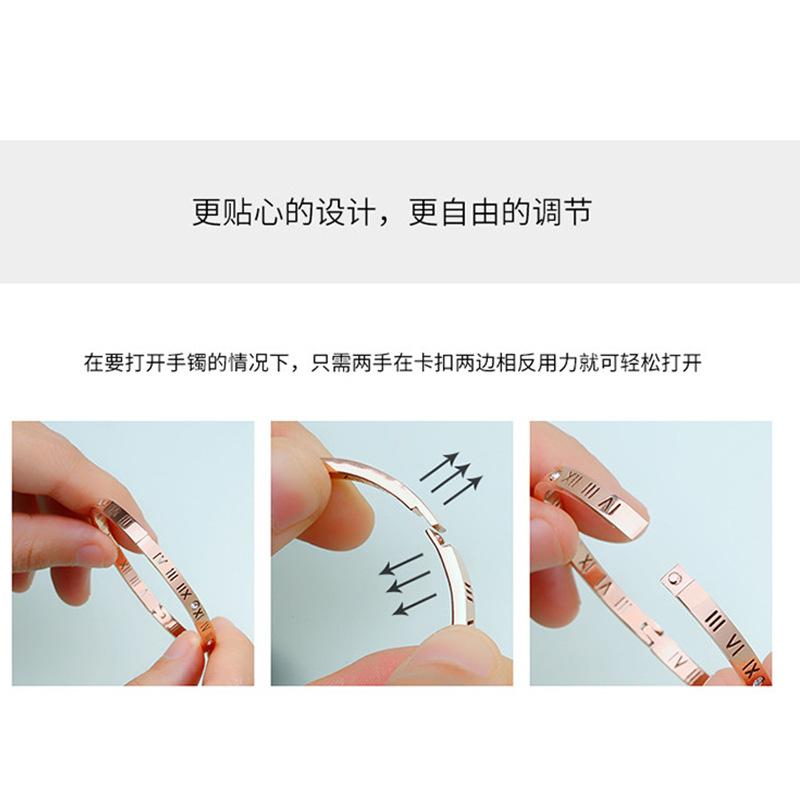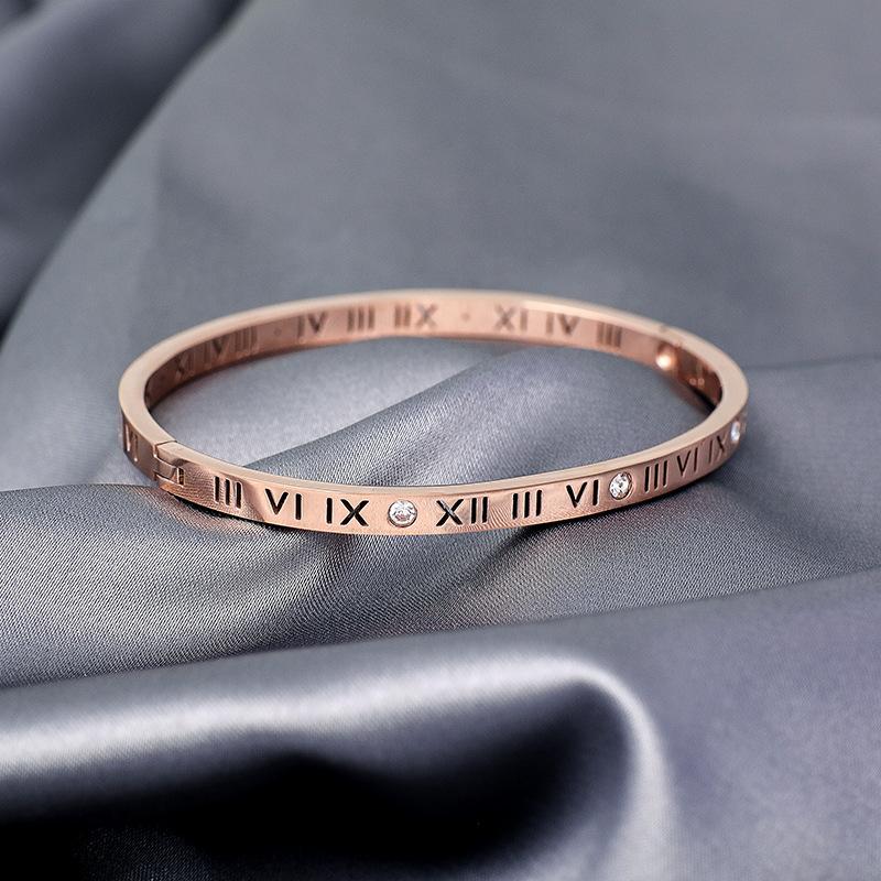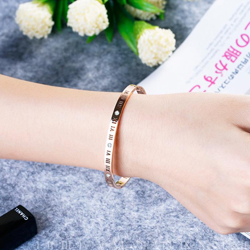 Moda Coreana Números Romanos Pulsera de Acero Inoxidable Pulsera Abierta para Pareja Personalidad Simple Joyería de Oro Rosa de 18k