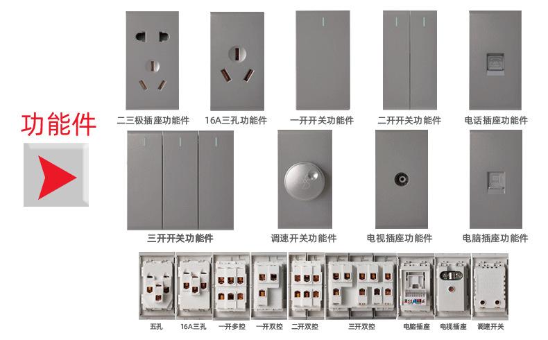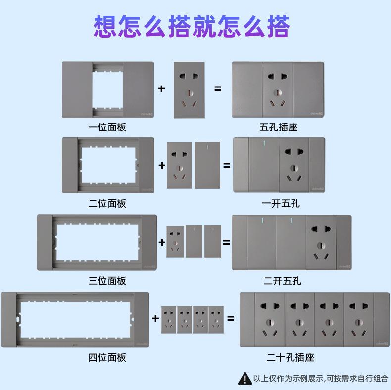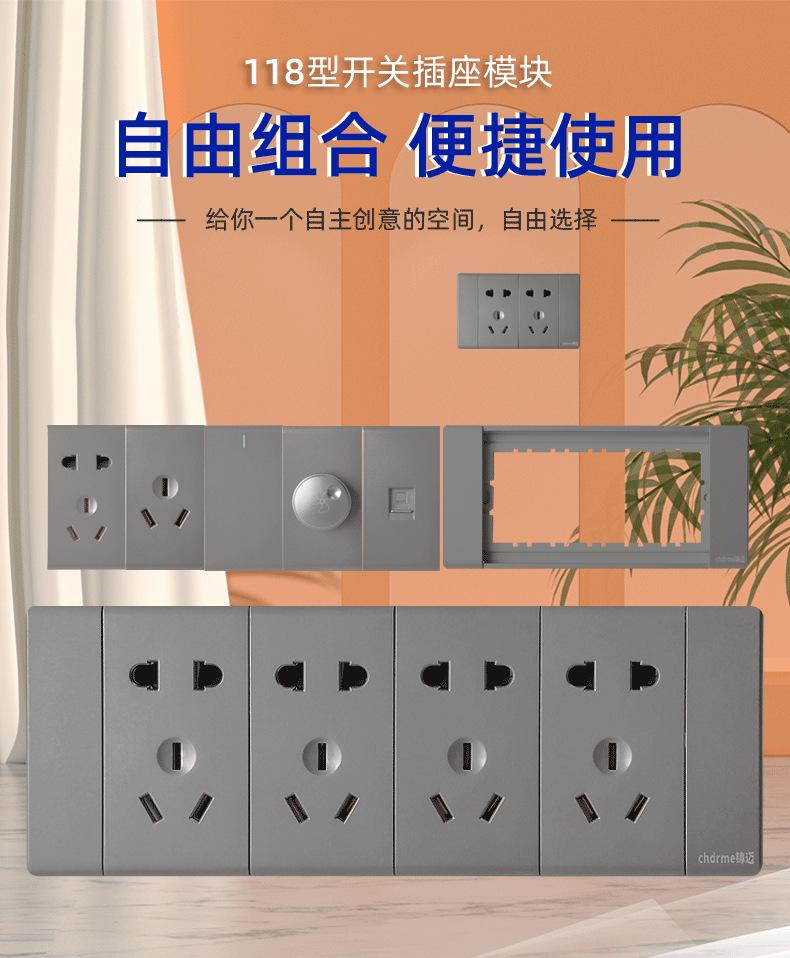 Jinmai estrella gris oculta 118 combinación de módulo de panel de enchufe interruptor empalmable doméstico función multi-posición enchufable
