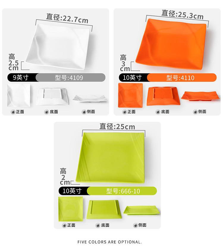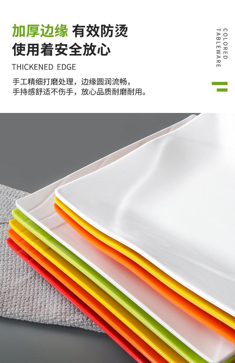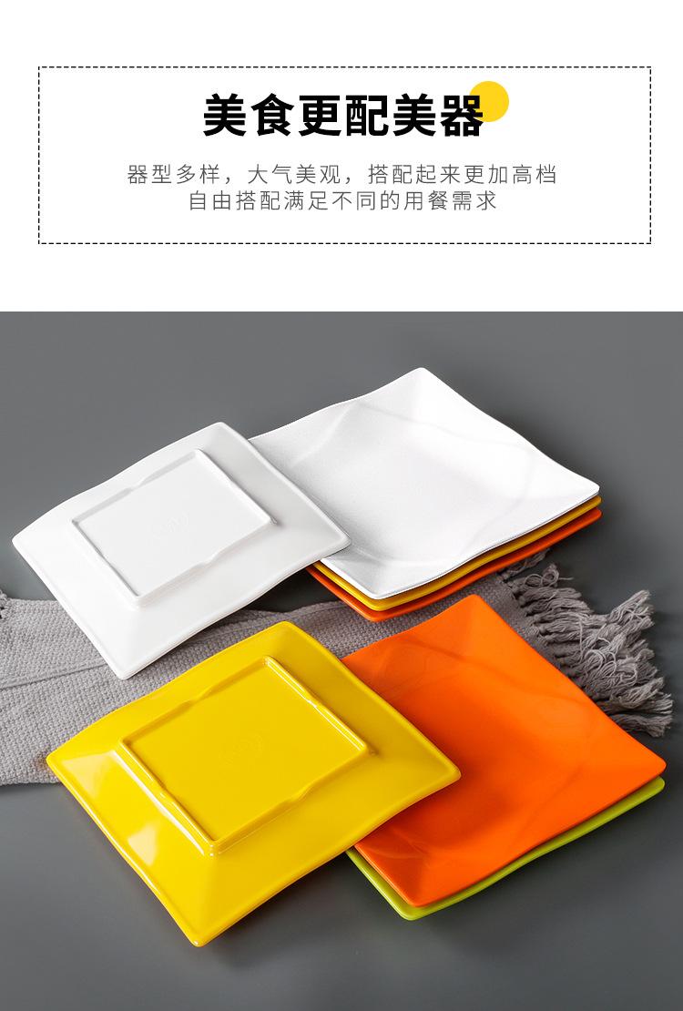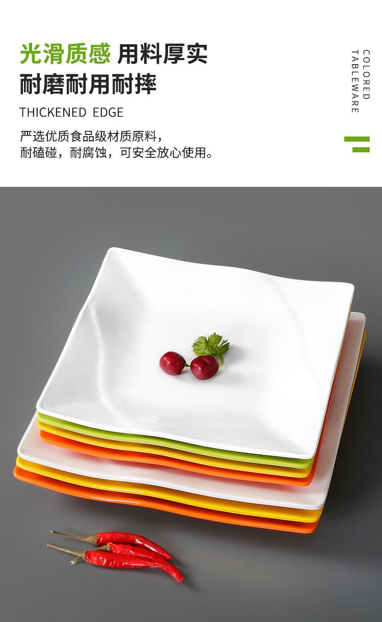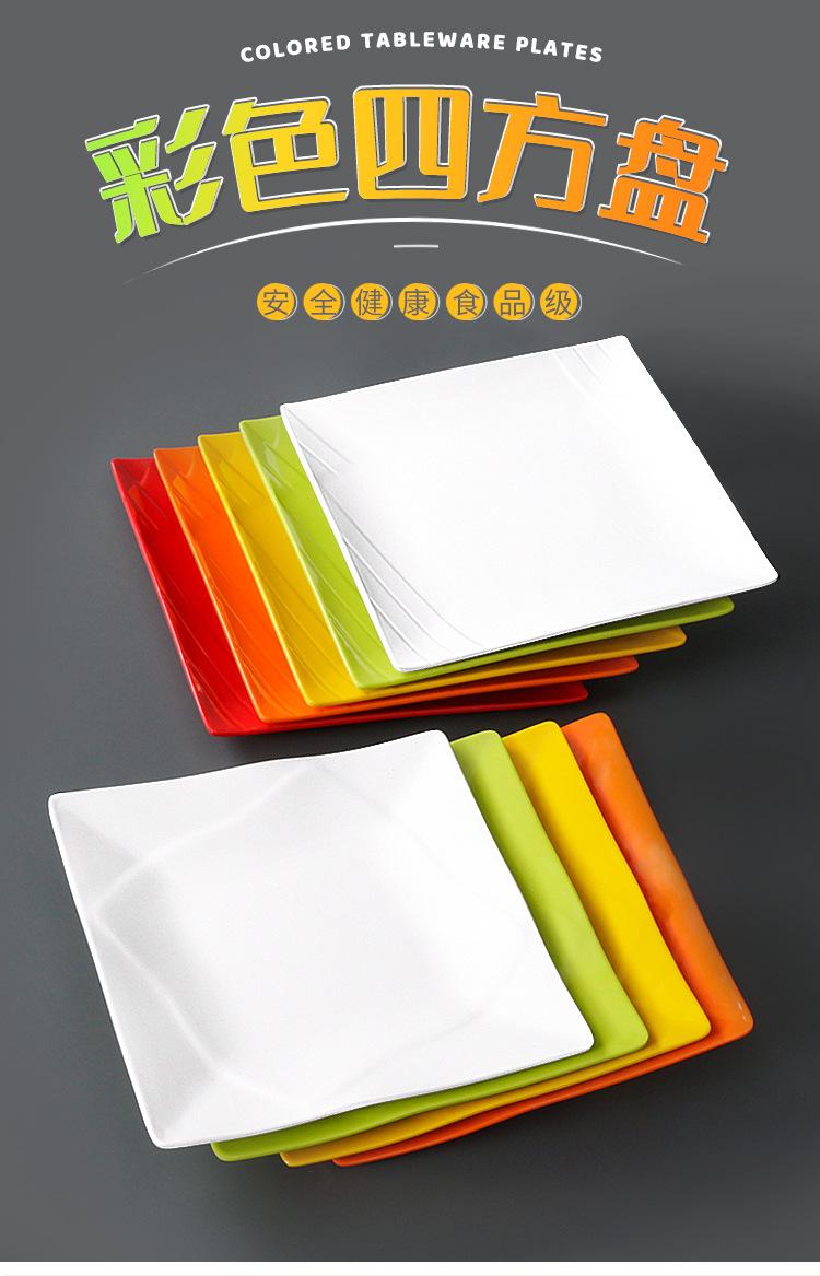 Plato cuadrado de melamina, vajilla de imitación de porcelana, plato de restaurante comercial, plato de cena, olla caliente de plástico, plato de cena de restaurante