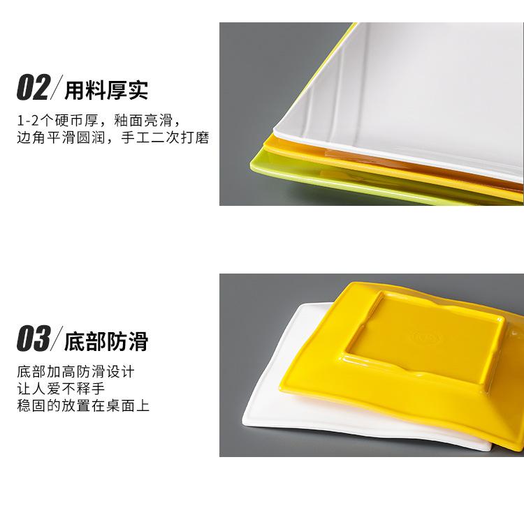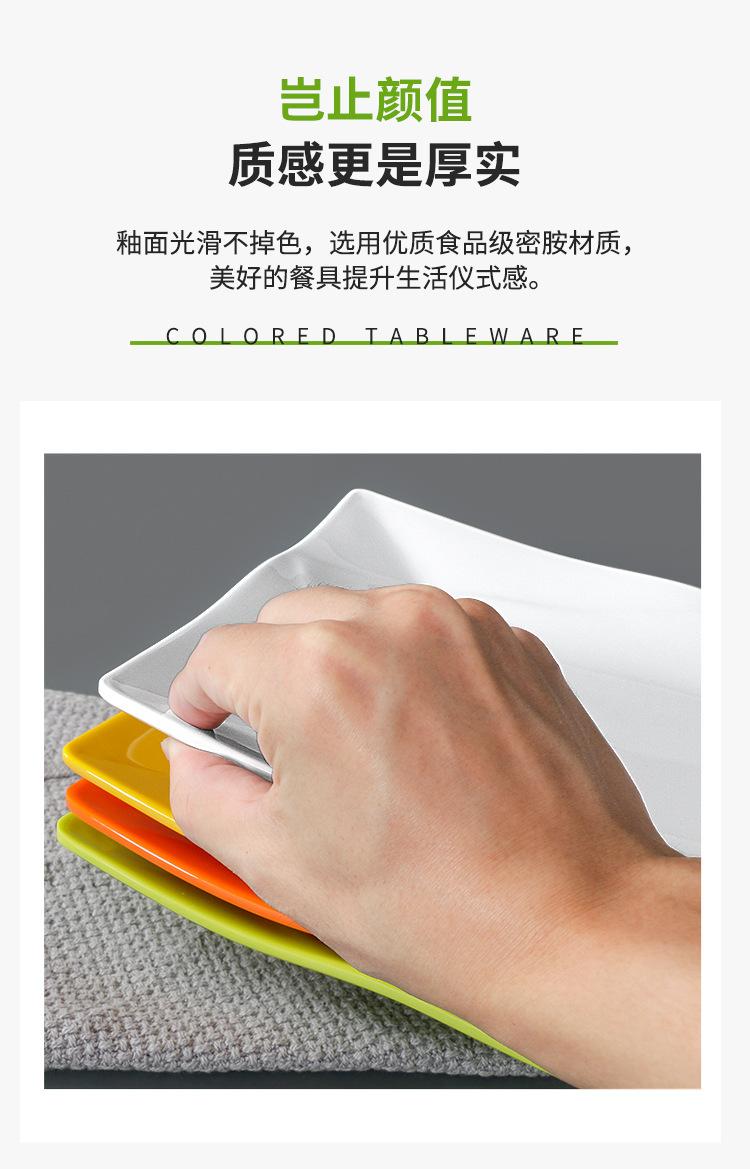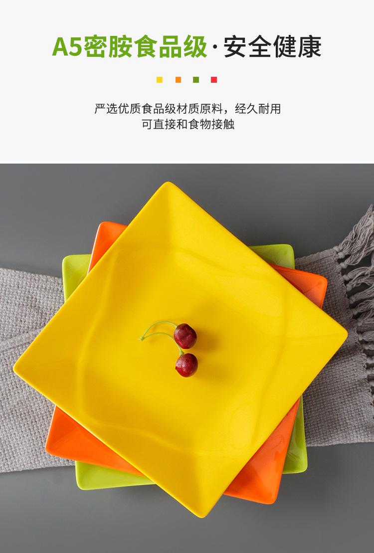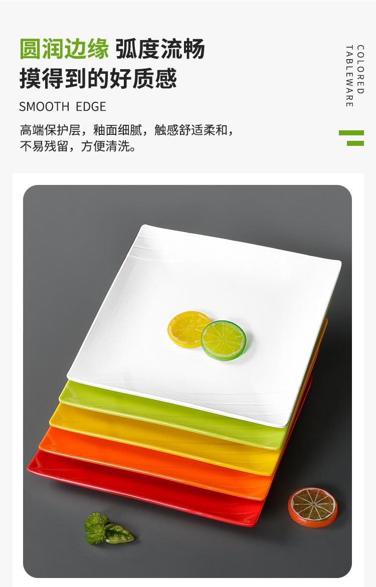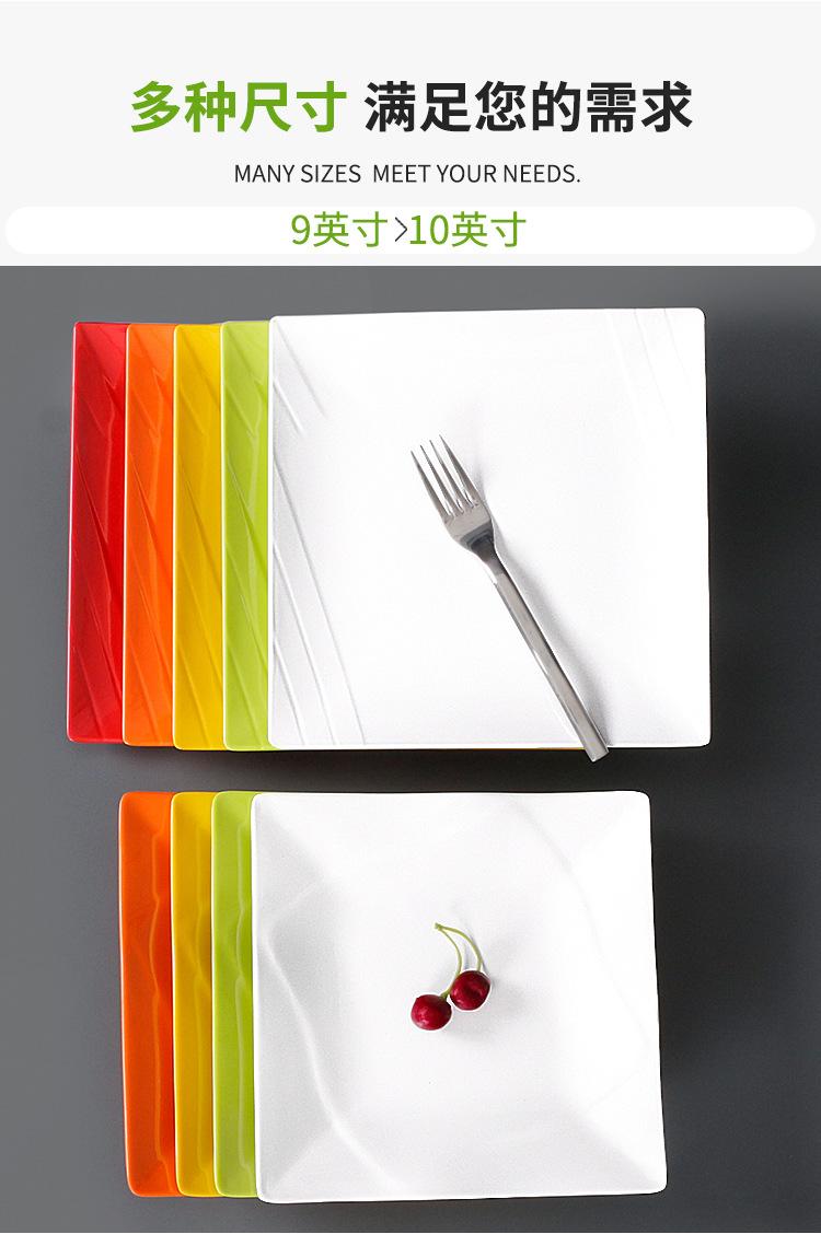 Plato cuadrado de melamina, vajilla de imitación de porcelana, plato de restaurante comercial, plato de cena, olla caliente de plástico, plato de cena de restaurante