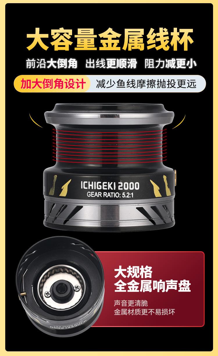 Carrete de Pesca Kemeilong de Metal de Boca Inclinada y Bobina Poco Profunda para Pesca de Lobina, Carrete sin Holgura de Largo Lanzamiento, Carrete Giratorio para Micro-Pesca