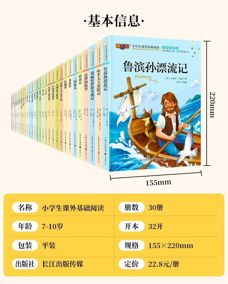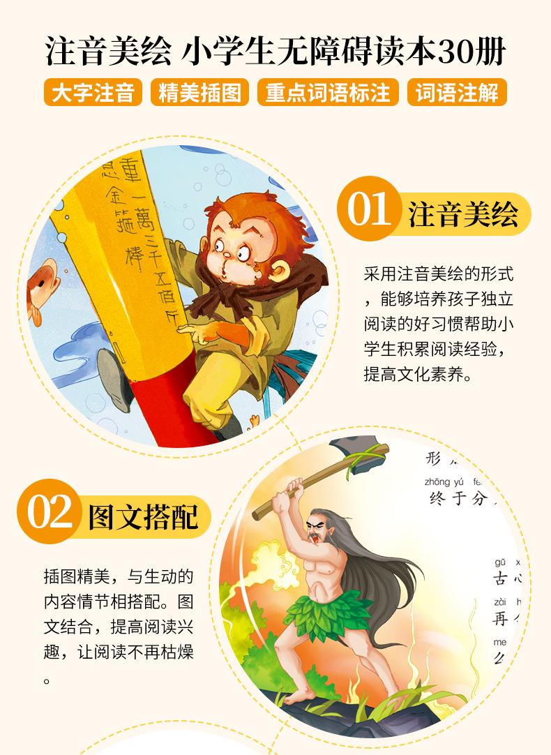 30 Volúmenes en una Caja de Regalo con Ilustraciones Fonéticas y Hermosas para Estudiantes de Primaria y Secundaria de 6 a 12 Años, Lectura Extracurricular Clásicos Literarios
