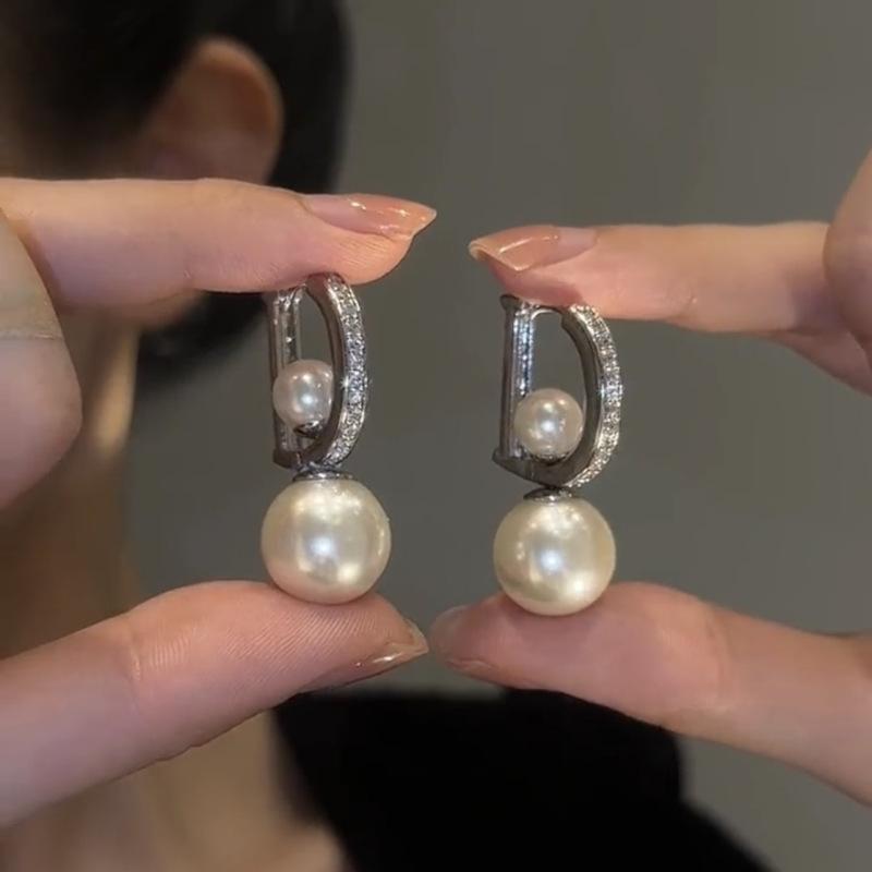 Pendientes de perla en forma de D de estilo Chanel, de estilo moderno y versátil, de nicho, de lujo, de alta calidad y con un toque de luz.