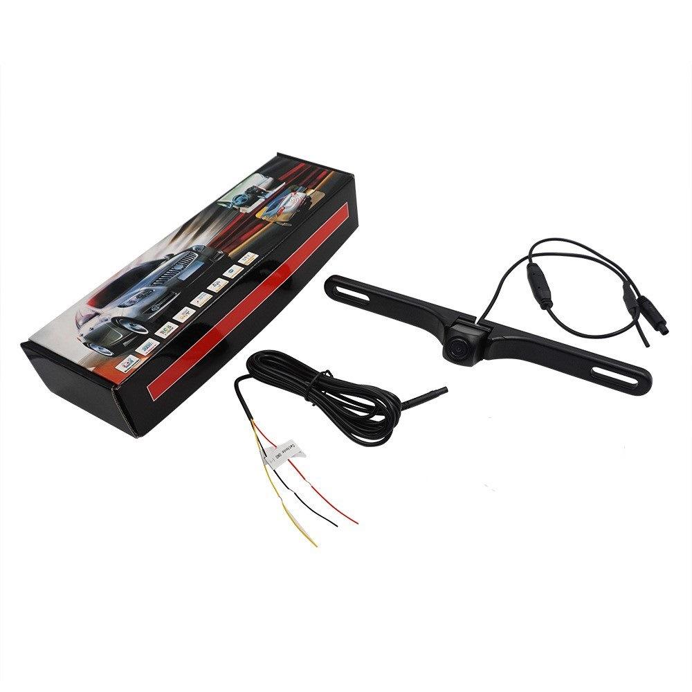 Paso 2: Instale la cámara, retire la luz de la placa y conecte la cámara a la unidad principal a través del hueco de la luz de la placa. Conecte los tres cables de alimentación en sus posiciones exactas, encienda el vehículo, ajuste el ángulo de visión apropiado y asegure la cámara con tornillos.
