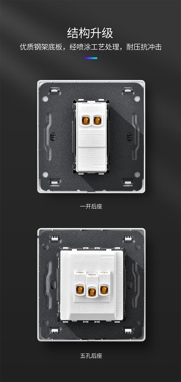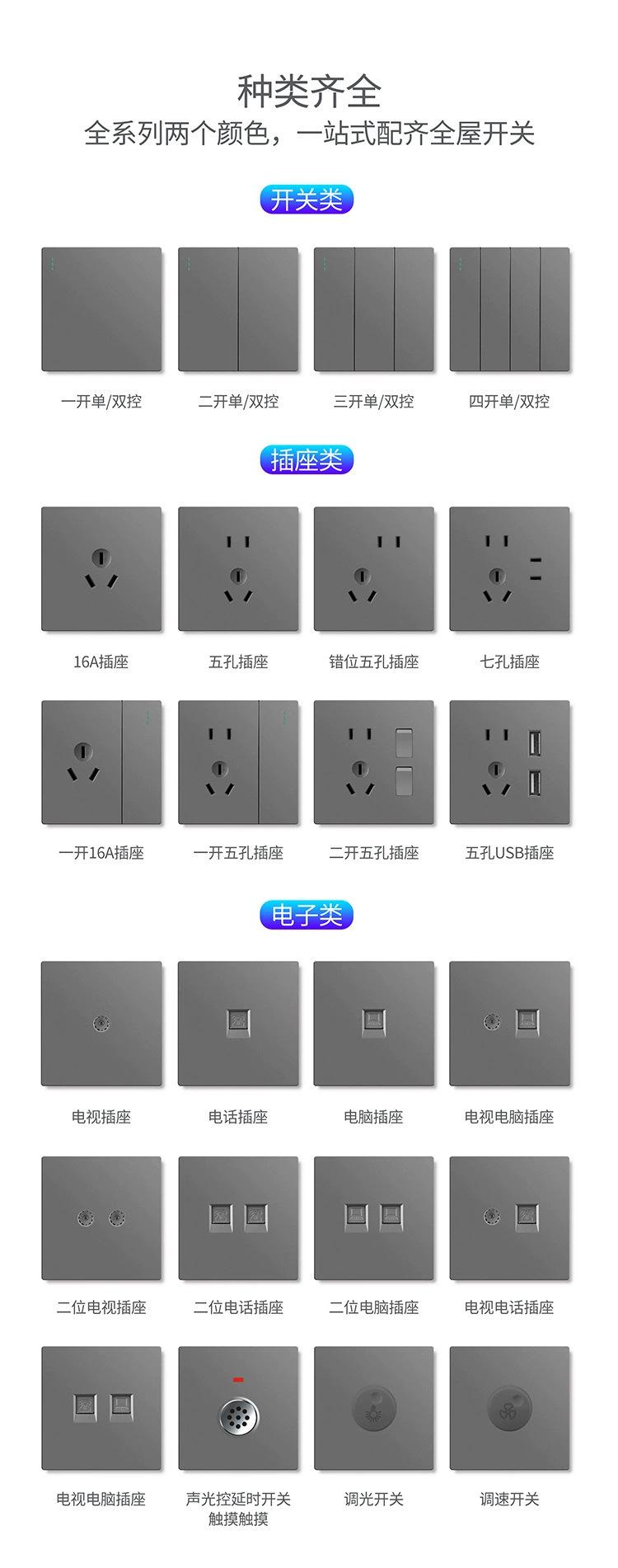 Five-hole socket, Misaligned five-hole socket, Five-hole dual USB, Blank Panel, One billing control, Second Ba...