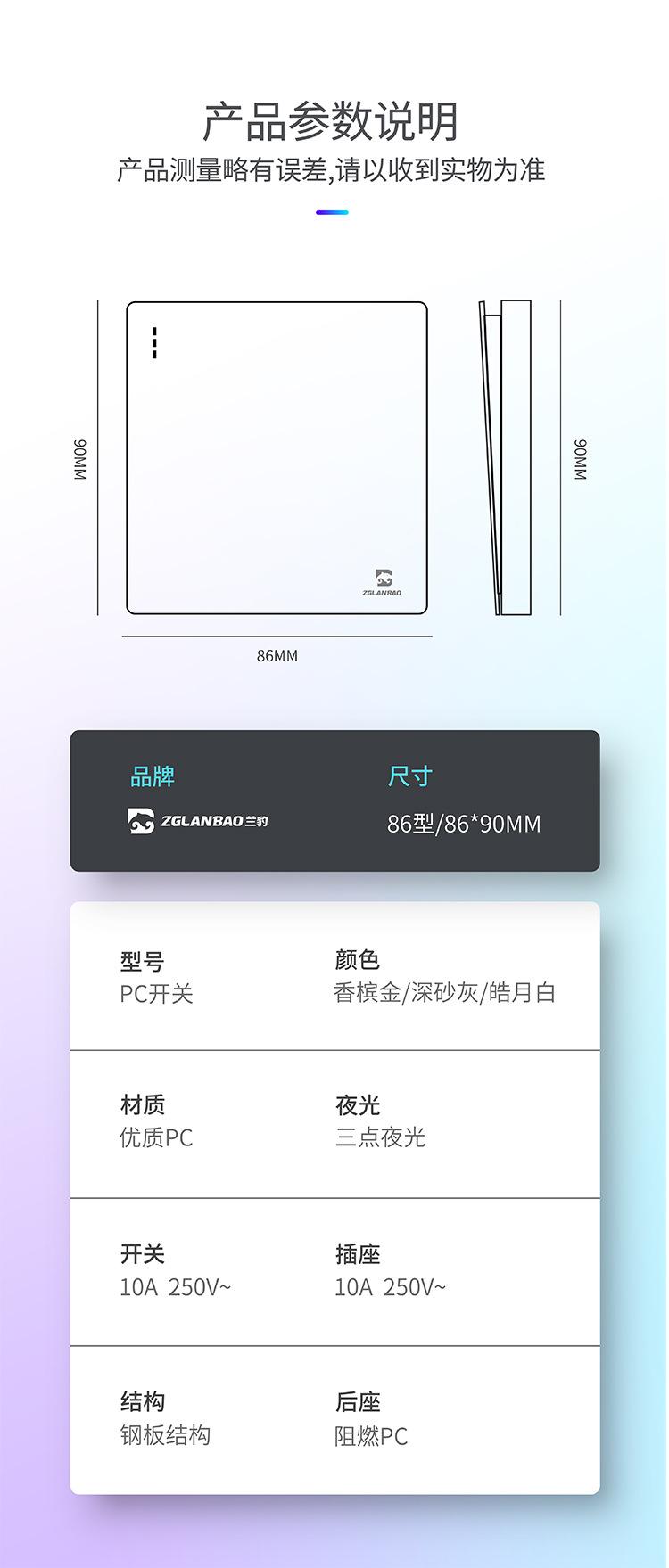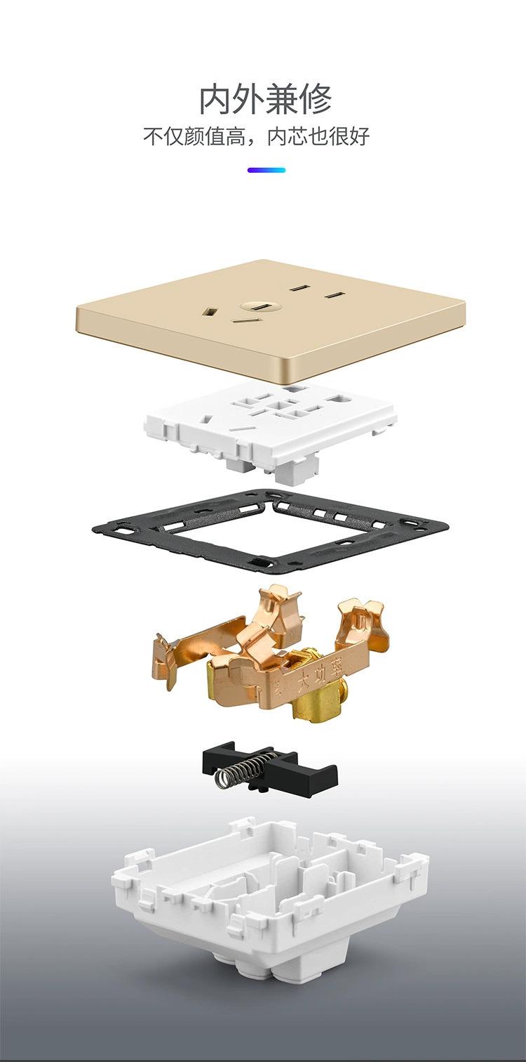 Venta al por mayor de fábrica Enchufe doméstico de cinco orificios Blanco Ingeniería Dos-Tres polos 86 Empotrado Unipolar Doble control Panel de interruptor de pared