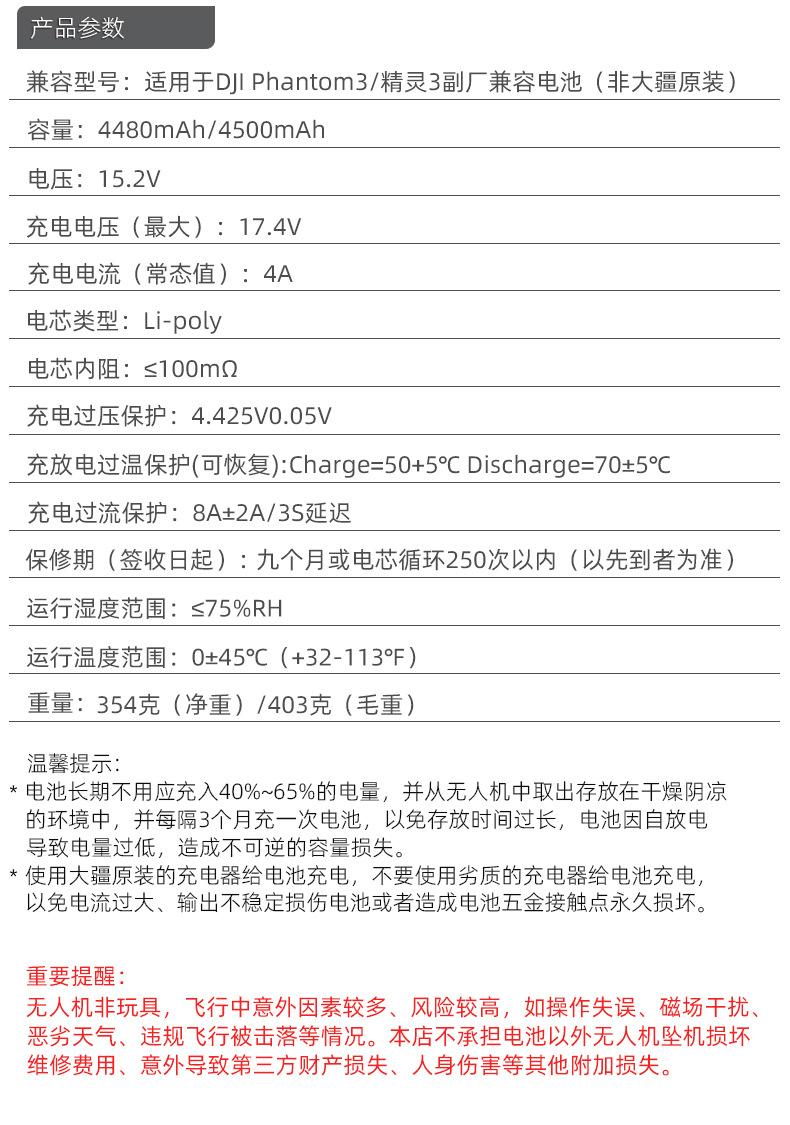 Adecuado para Dji Phantom 3 Batería de repuesto secundaria nueva de fábrica Phantom3 15.2V 4480Mah 68Wh