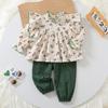 Traje de primavera y otoño para niña, conjunto de dos piezas con camisa y jeans de conejo de dibujos animados para bebé, moda para bebé, estilo occidental