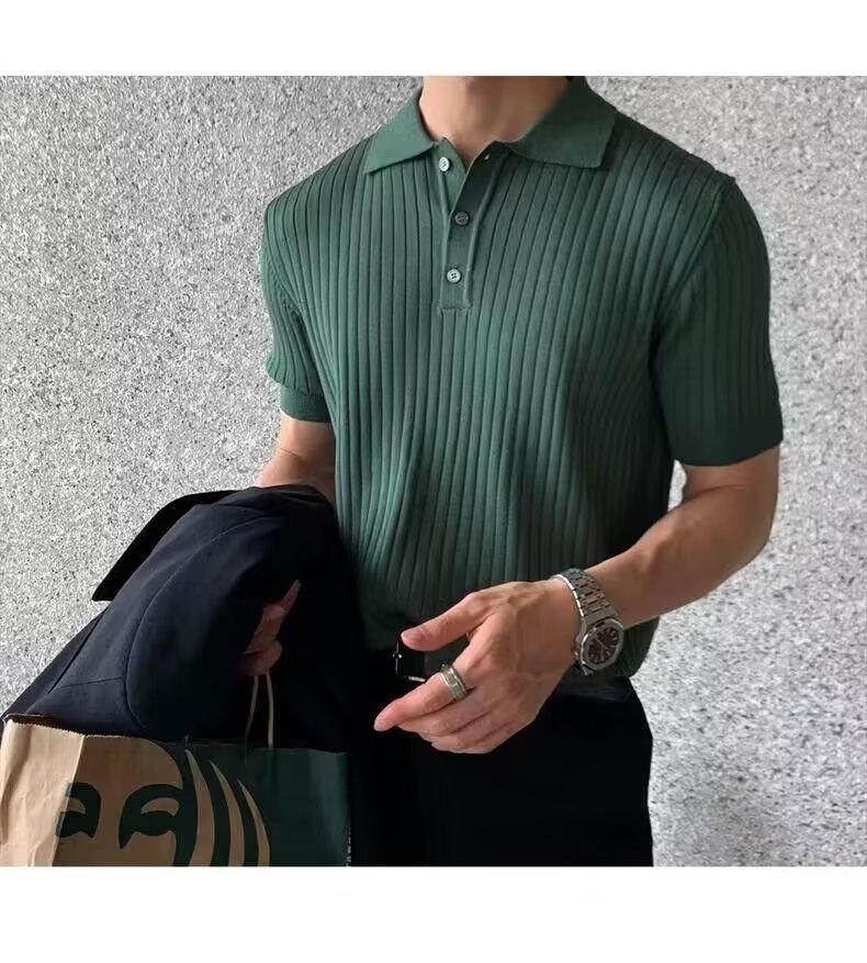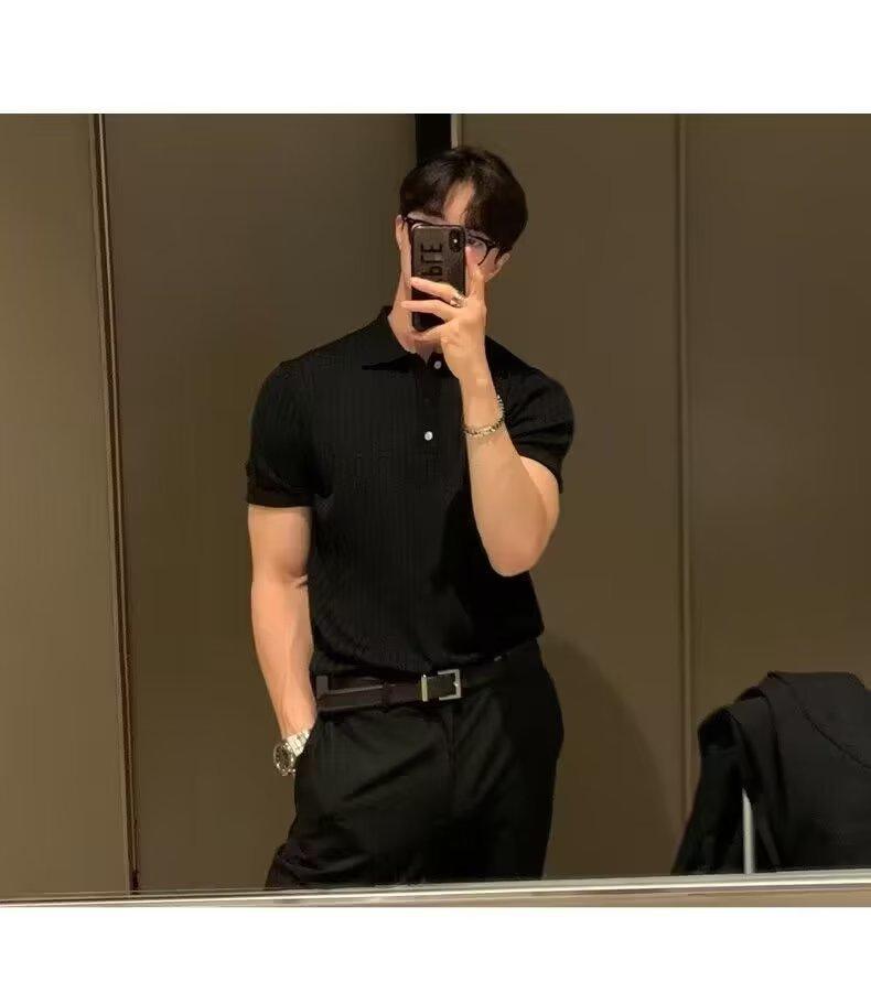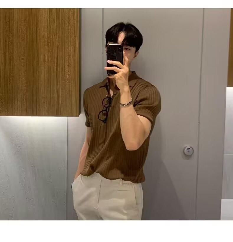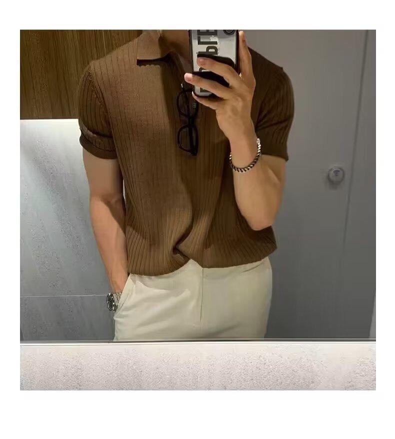 Camiseta de manga corta de verano para hombre con cuello, polo de solapa de marca de moda, camisa blanca sencilla de media manga que combina con todo.