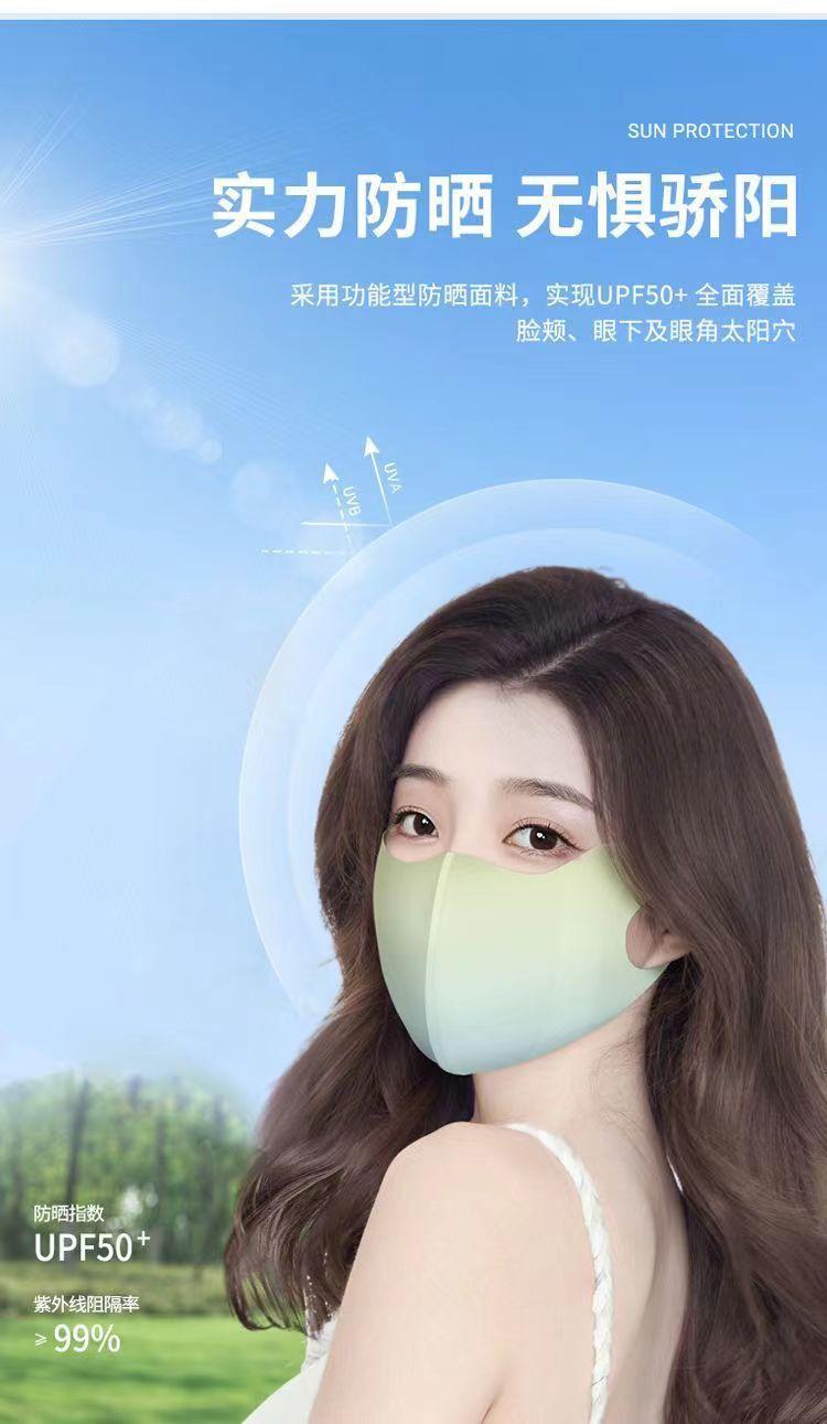 Mascarilla de protección solar para mujer, sensible al hielo, sin costuras, 3D, protección UV, para el contorno de los ojos, de aspecto elegante, fina y transpirable para el verano.