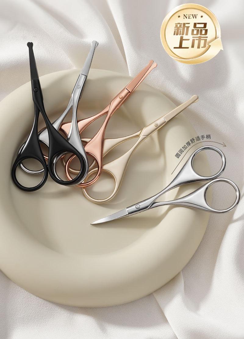 Recortador de vello nasal de acero inoxidable con cabezal redondo de seguridad para hombres, tijeras pequeñas para maquillaje, barba, herramientas de belleza, traje