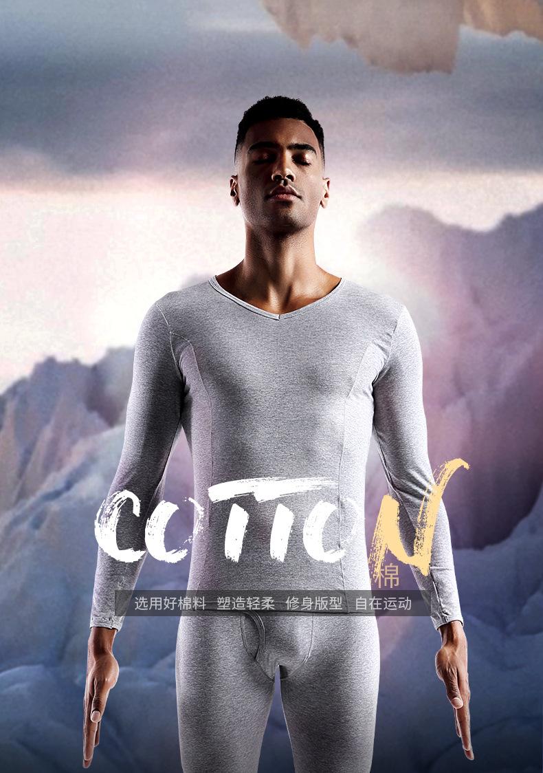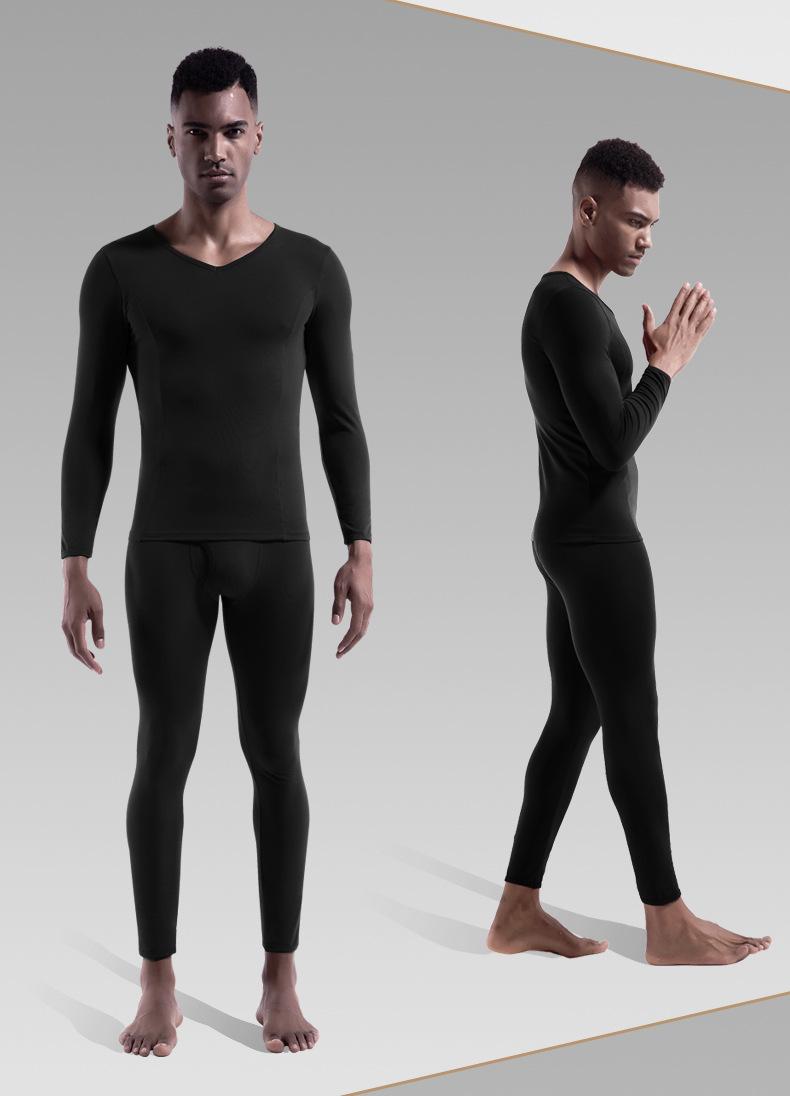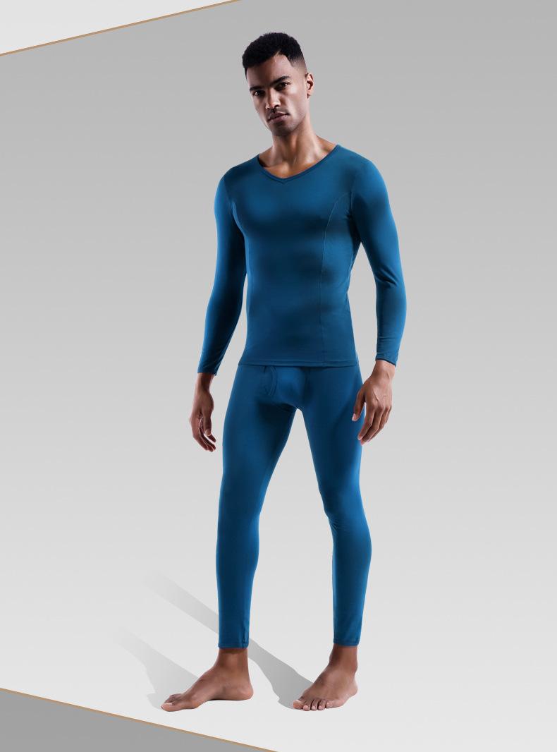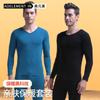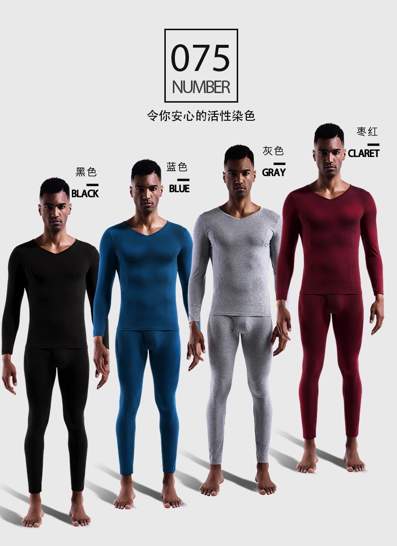 Ropa interior térmica básica fina para hombre, ropa de otoño, pantalones de otoño, suéter cómodo de algodón, cuello bajo, cuello en V, camisa base ajustada.