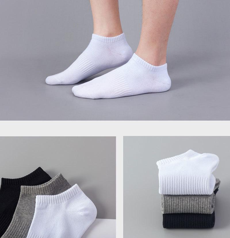 Compra Calcetines cortos de algodón para hombre, en blanco y negro, de verano, de color liso, deportivos, de caña baja y modernos, para adolescentes. al por mayor en Joom.pro