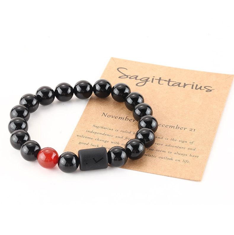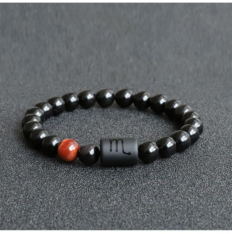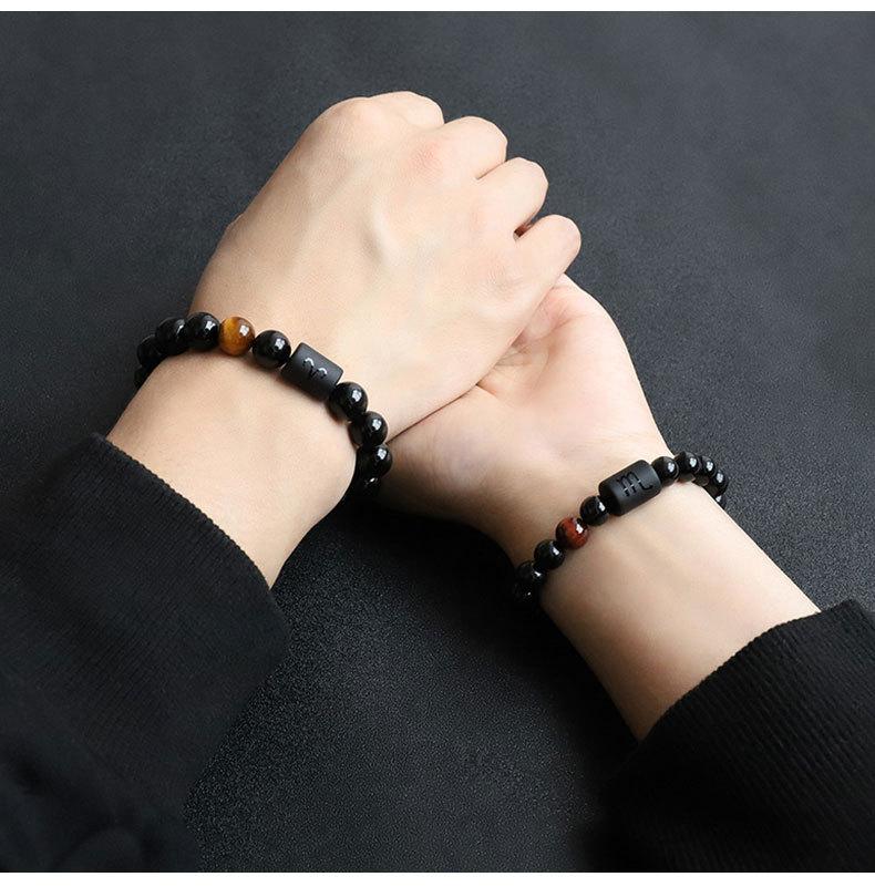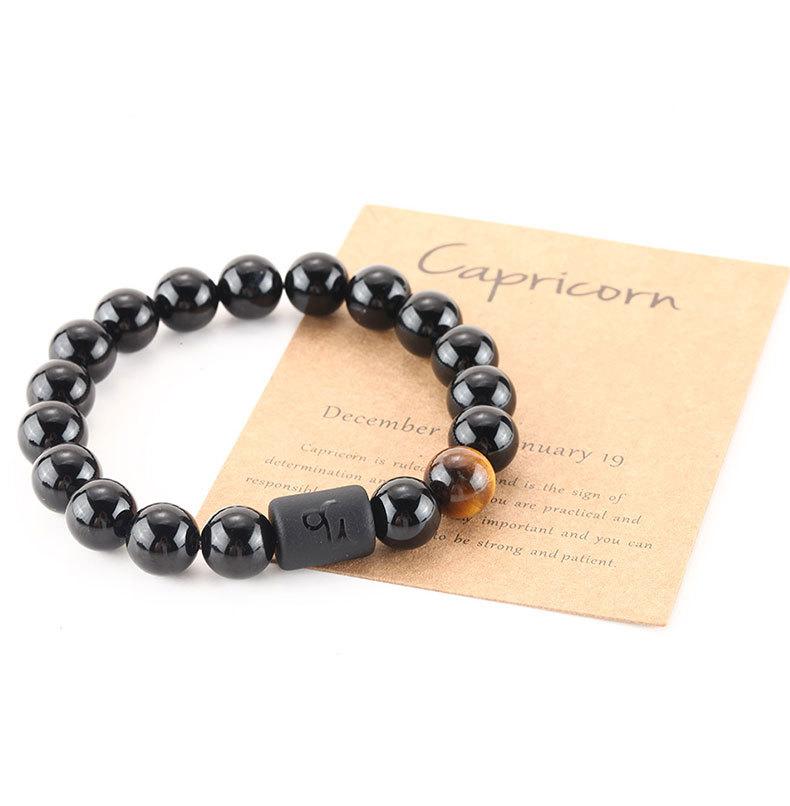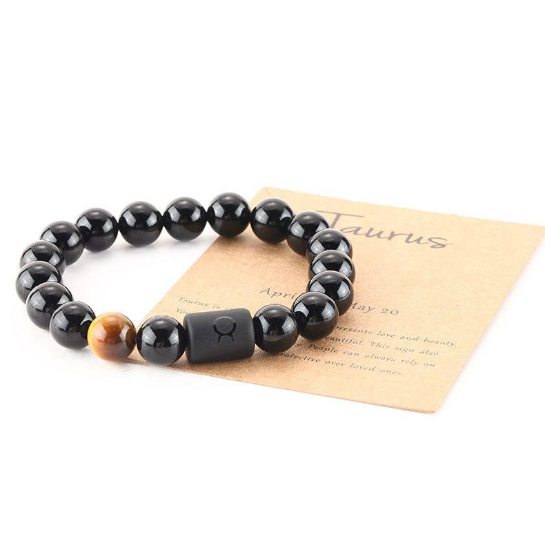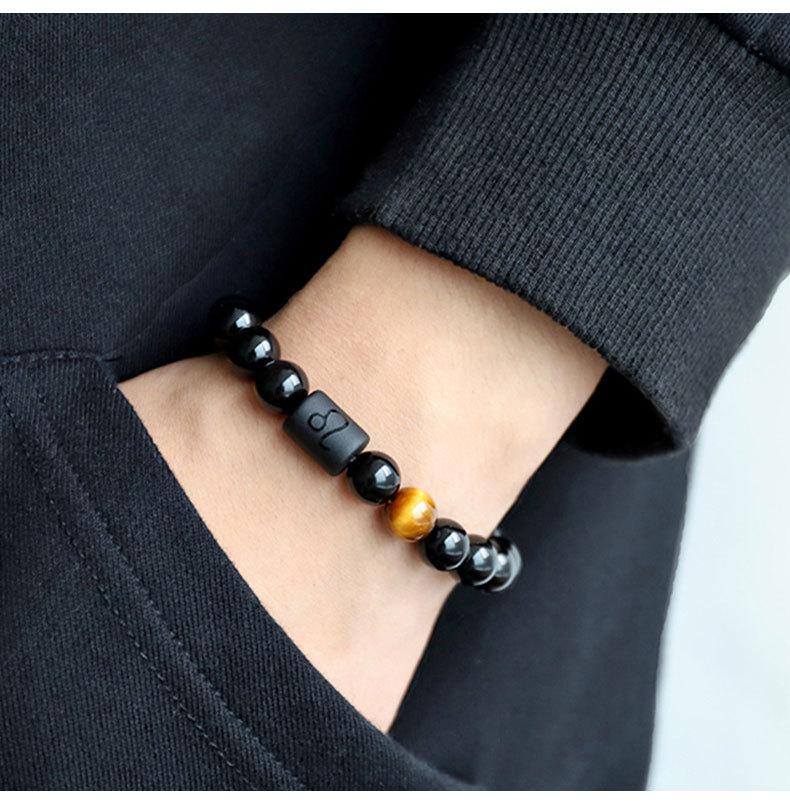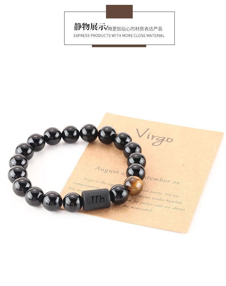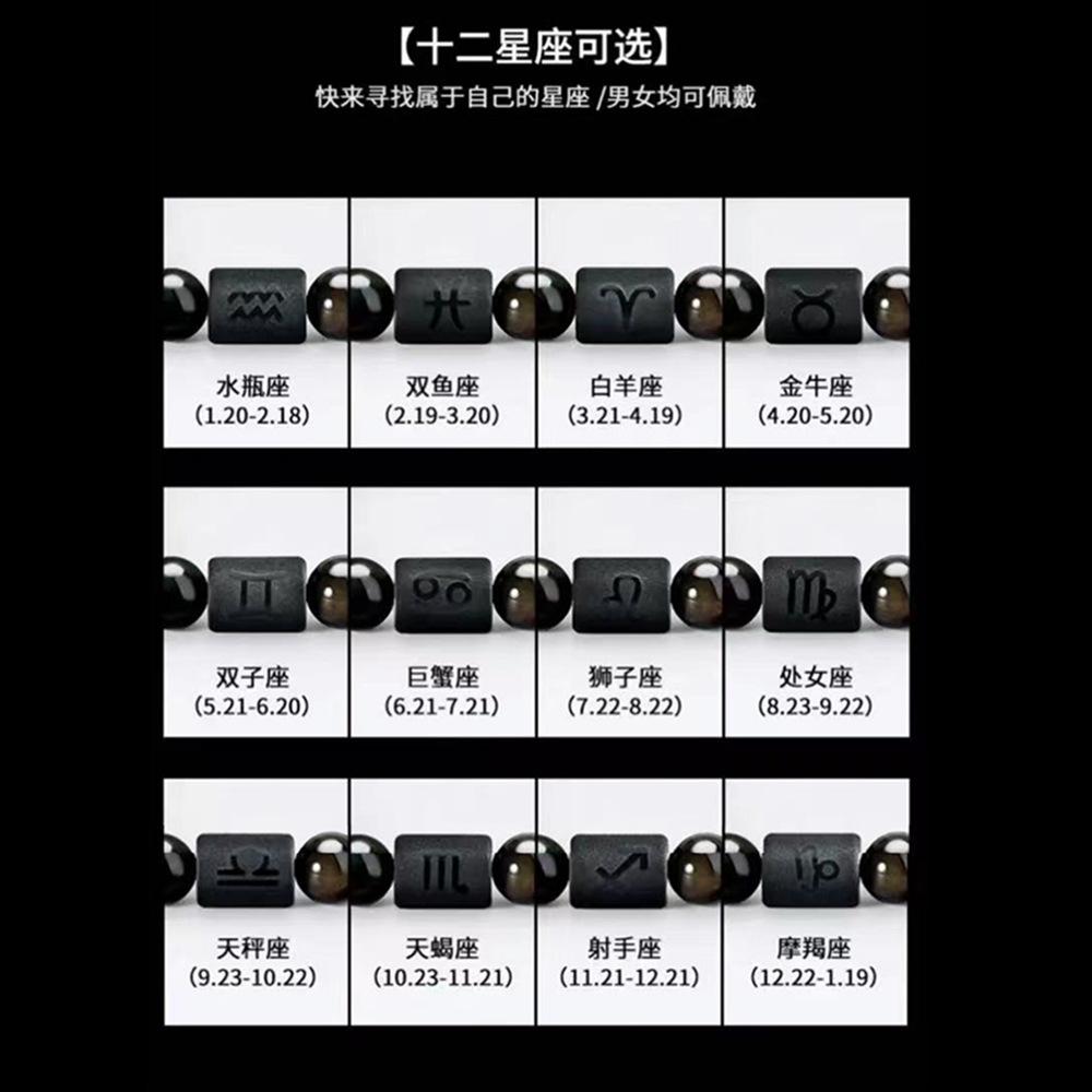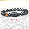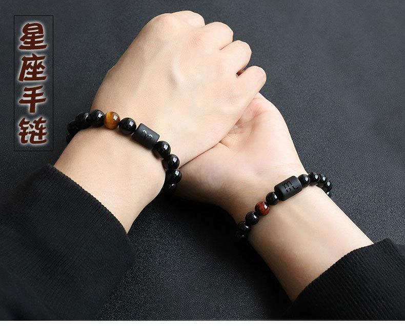 Pulsera Elástica de los Doce Signos del Zodíaco Más Vendida en Amazon Transfronterizo Cuentas Redondas Negras de 8 mm Piedra Ojo de Tigre Cuentas para Pareja