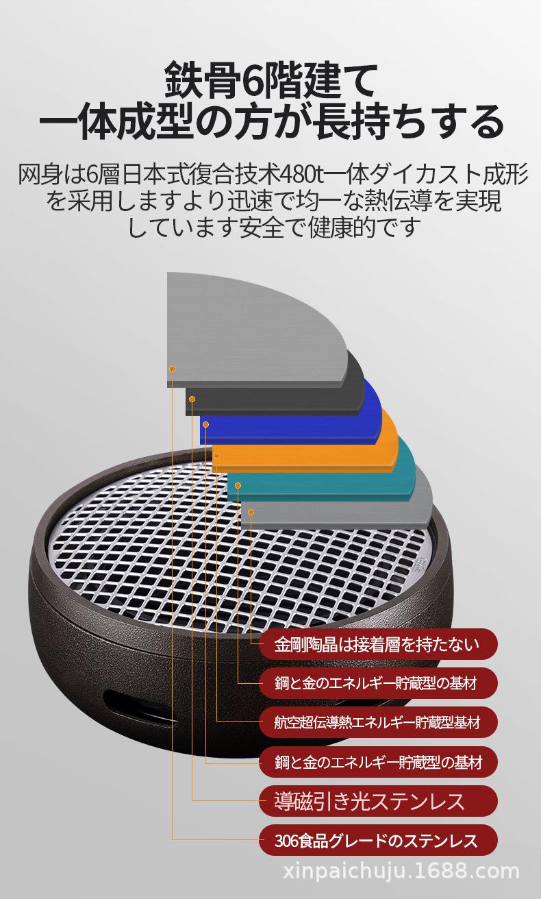 Red de barbacoa japonesa de stock transparente, sartén antiadherente de una sola pieza, barbacoa comercial, red de barbacoa redonda